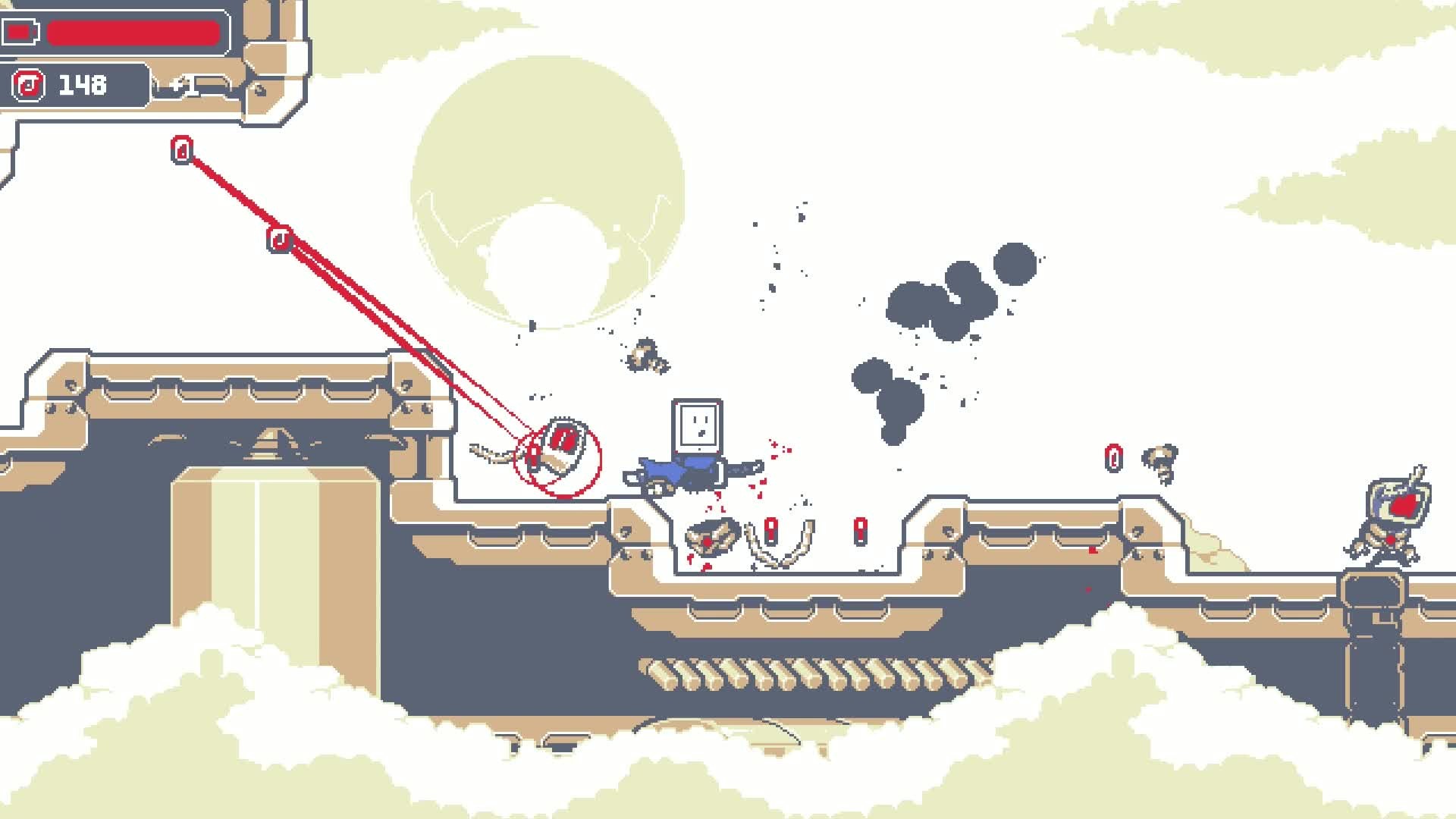 KUNAI is a quirky, fast-paced action platformer. You play as Tabby, a tablet who joins the fight against a robot uprising. Use your kunai and ninja parkour skills to stop Lemonkus, the A.I.-gone-evil that almost wiped out all human life.