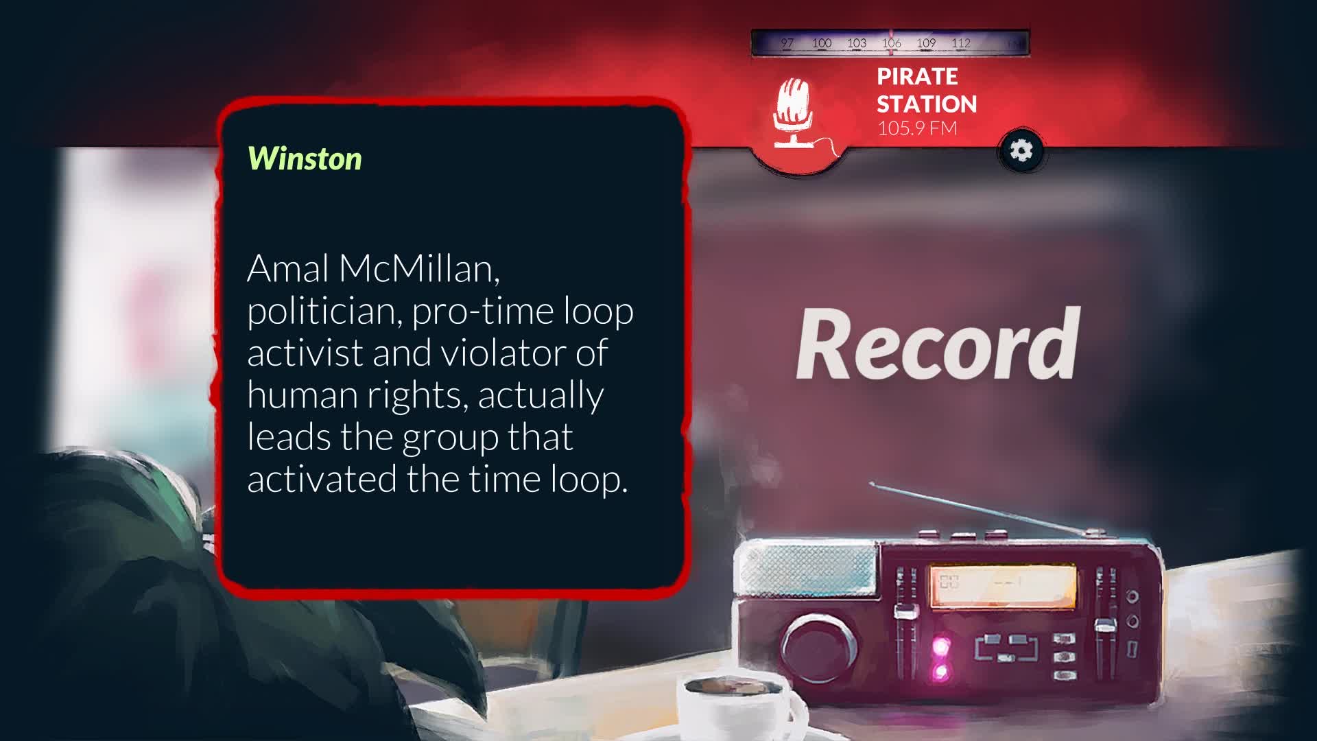An audio mystery set in a time loop. Record, rewind time and broadcast snippets of radio shows to expose radio hosts, conspiracy theorists and politicians.