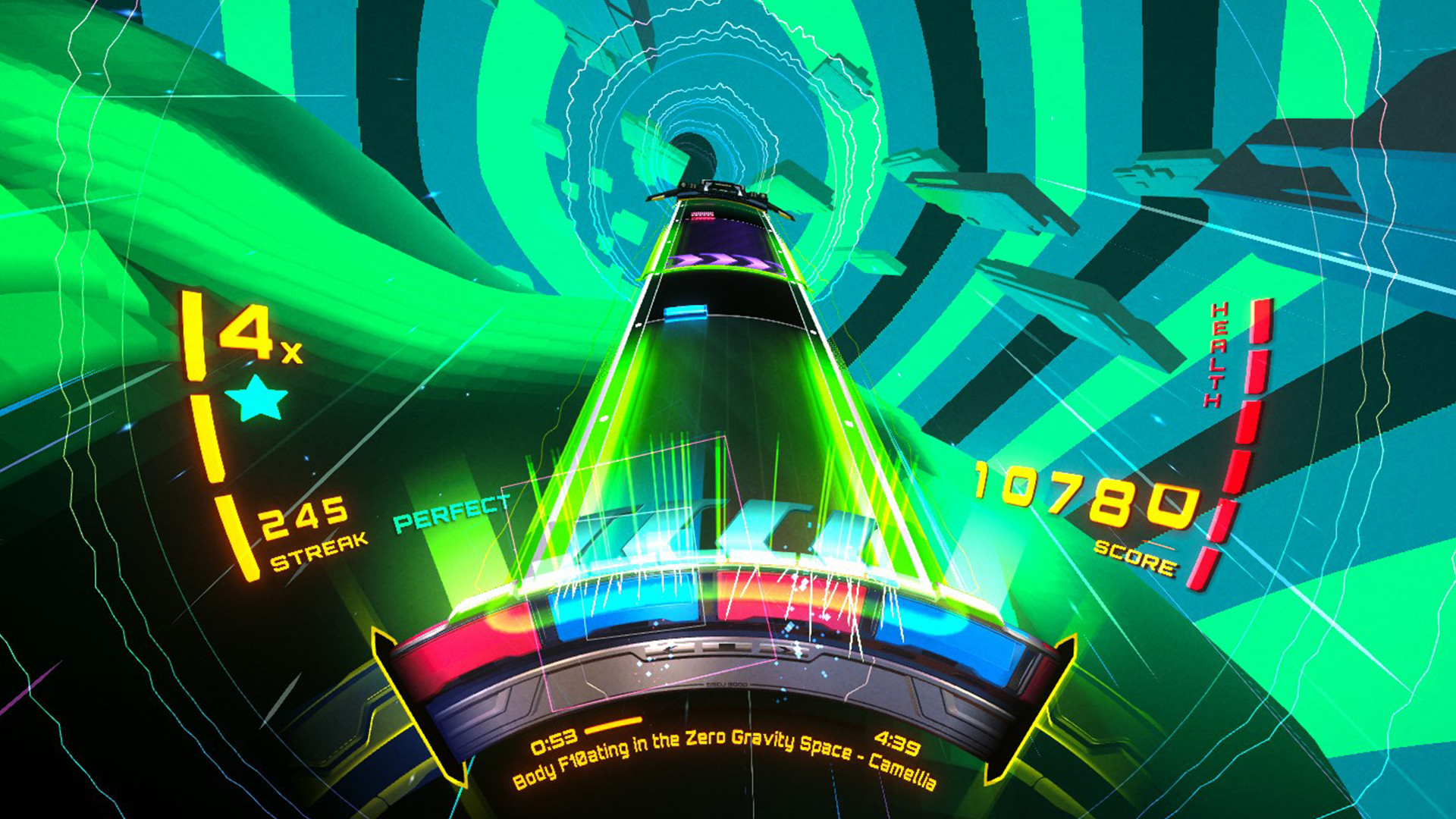 Enter the Rhythm Dimension. A homage to classic arcade rhythm games (Guitar Hero, DDR), with a modern aesthetic and soundtrack. Match colours and beats, spin, tap, flick and flow through the juiciest beats in the universe. Supports multiple control styles including MIDI DJ gear on Steam!