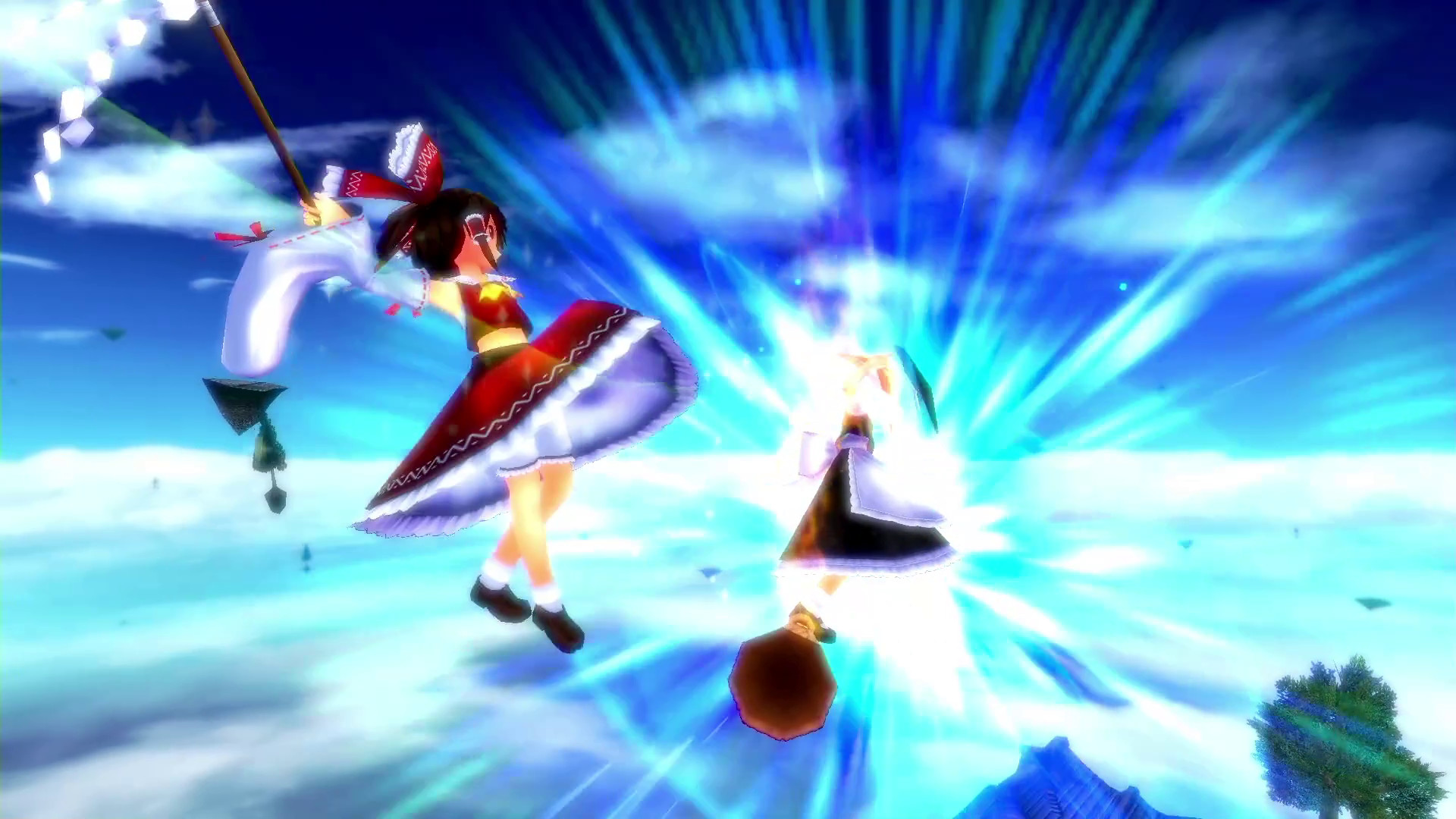 Touhou girls fight dramatic battles in the sky! A 3D fired-up battle action game based on Touhou Project! Features a "Fired-up Battle System", in which characters abilities change to the playing song.
