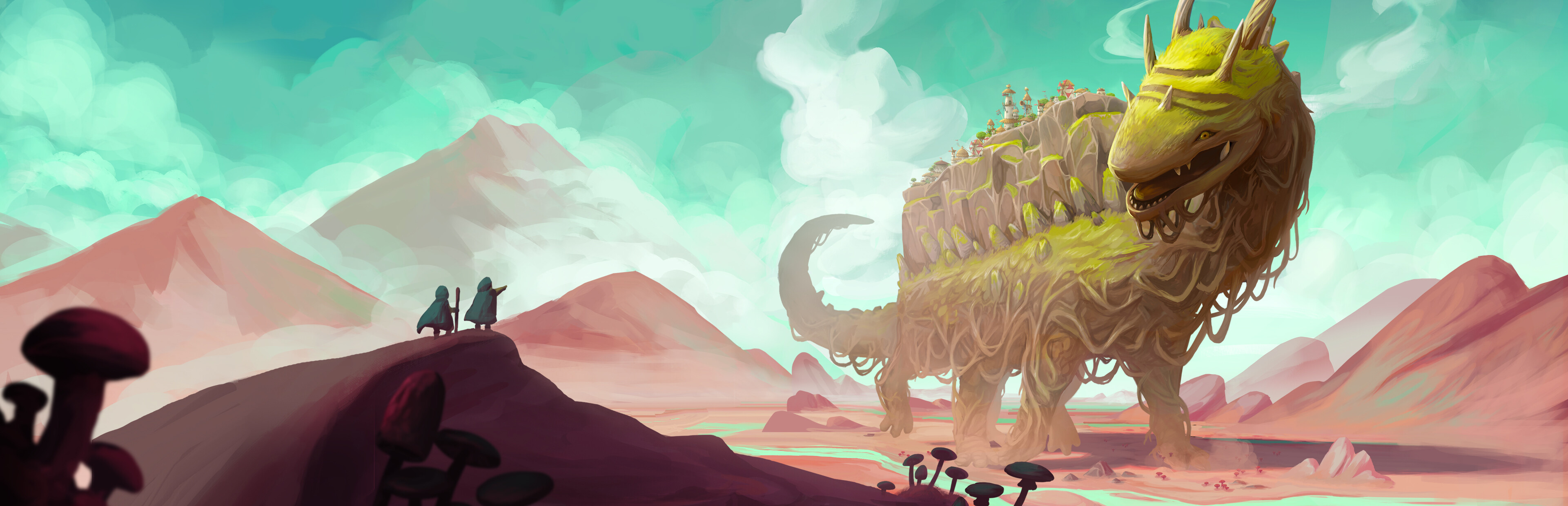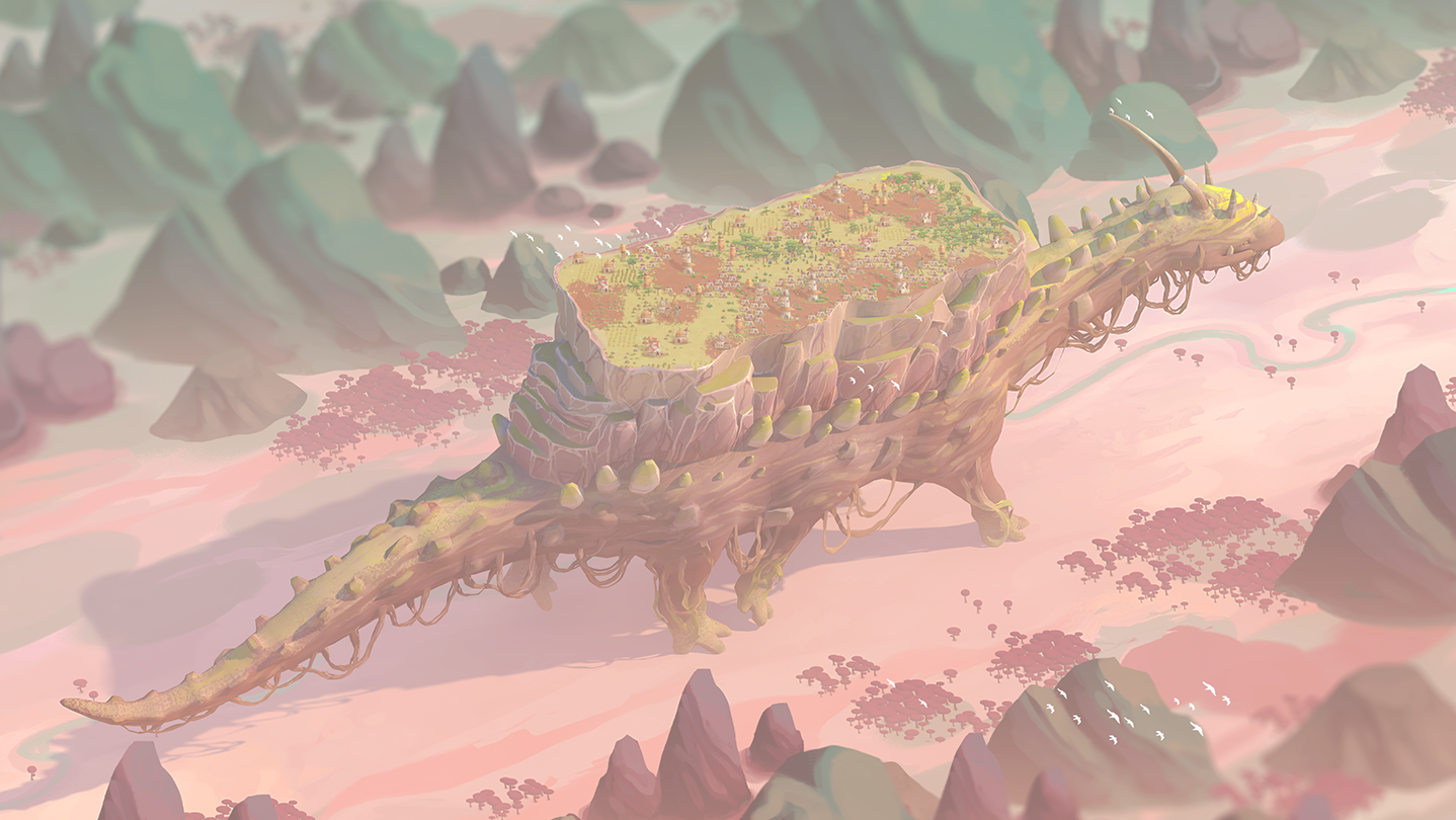The Wandering Village is a city-building simulation game on the back of a giant, wandering creature. Build your settlement and form a symbiotic relationship with the colossus. Will you survive together in this hostile, yet beautiful post-apocalyptic world, contaminated by poisonous plants?