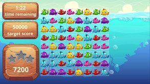 The classic and many favorite genre of three in a row is now on the theme of fish. Move similarly colored fish in a row vertically or horizontally to chain