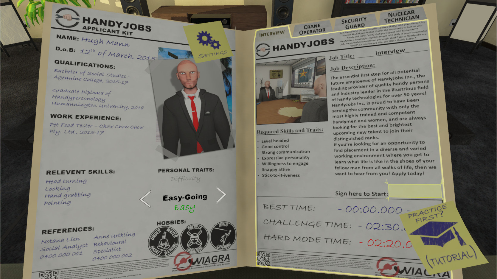 Meet Mr Hugh Mann. Hugh loves humans, and he wants to be just like them. Help Hugh to fit in and learn what human life is like by manually moving his head, arms and legs as you work together to explore an array of fun and wacky jobs in the pursuit of helping Hugh to fit in and be accepted by all!