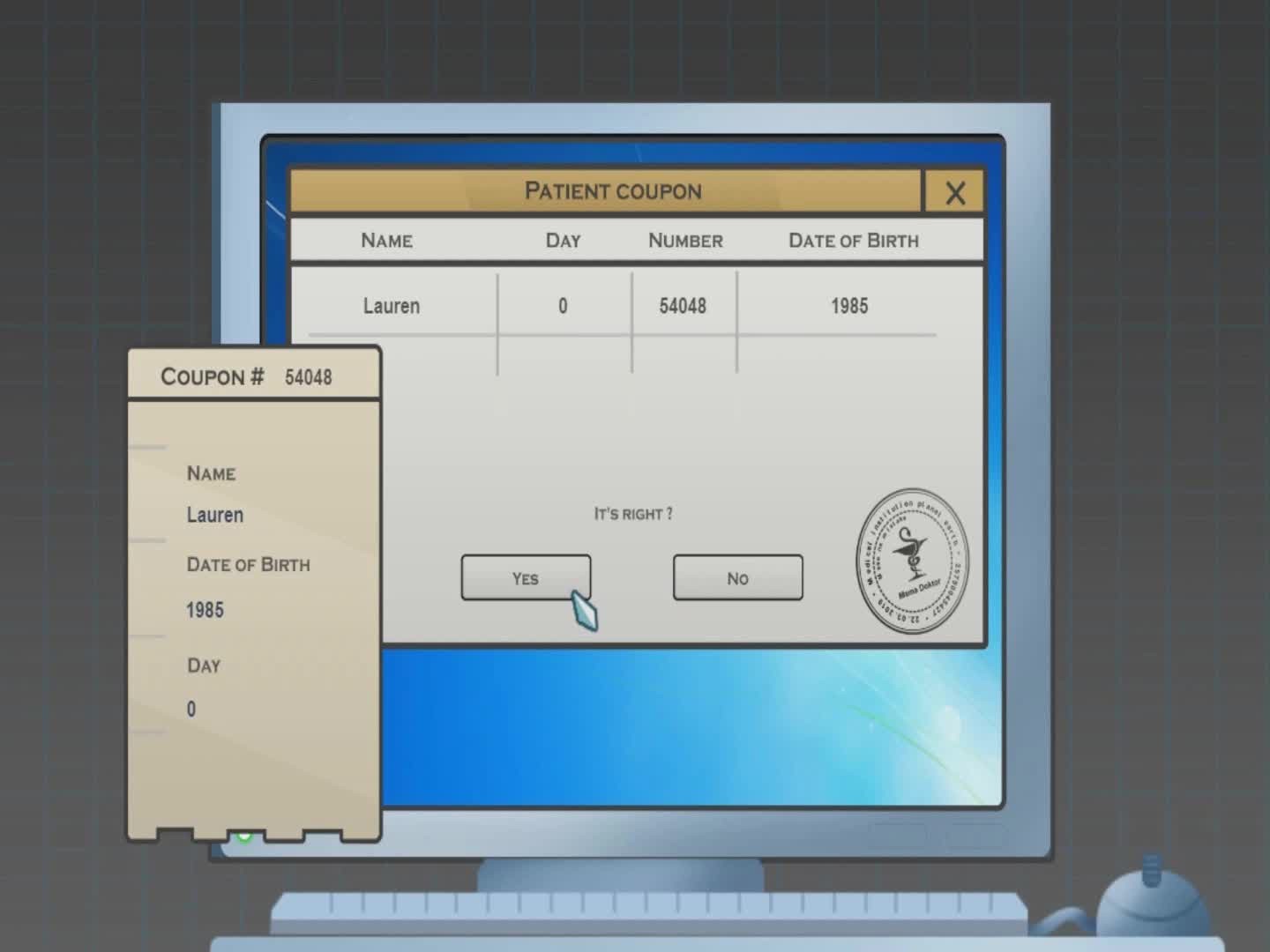 Game simulator of the work of a general practitioner in a hospital. Your goal is to identify diseases in patients and achieve the highest level. Take care of the routine of the physician, control of coupons and carefully check each incoming patient for the presence of certain diseases.