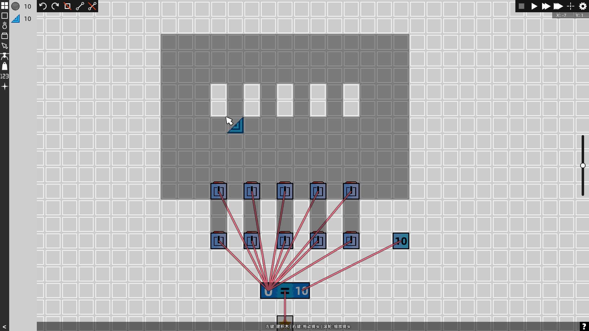 Find the way to press the goal button. Or use blocks to build scene you like.