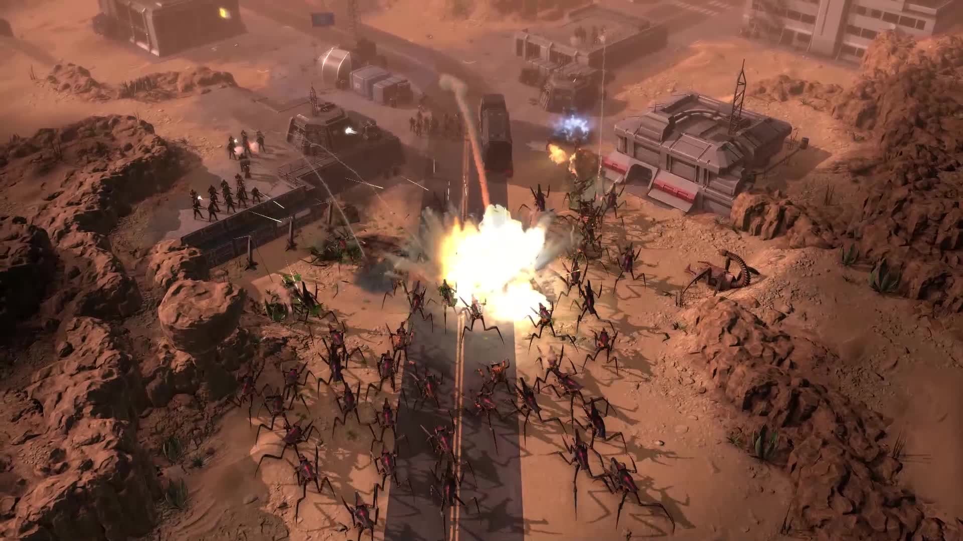 Lead the Mobile Infantry in this RTS game set in the Starship Troopers film universe. Balance your army composition with a diverse set of unit types, overcome line-of-sight and line-of-fire challenges through tactical positioning, and use special abilities to smash the Arachnid hordes!