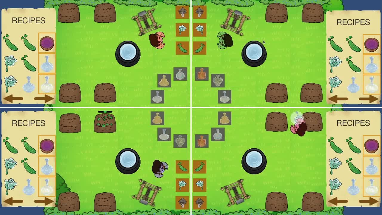 Alchemelee is a potion-brewing party game that can be played with up to 4 players. Grow ingredients, make potions, and use them to affect the actions of other players, or be the first to make all three of your designated potions to win