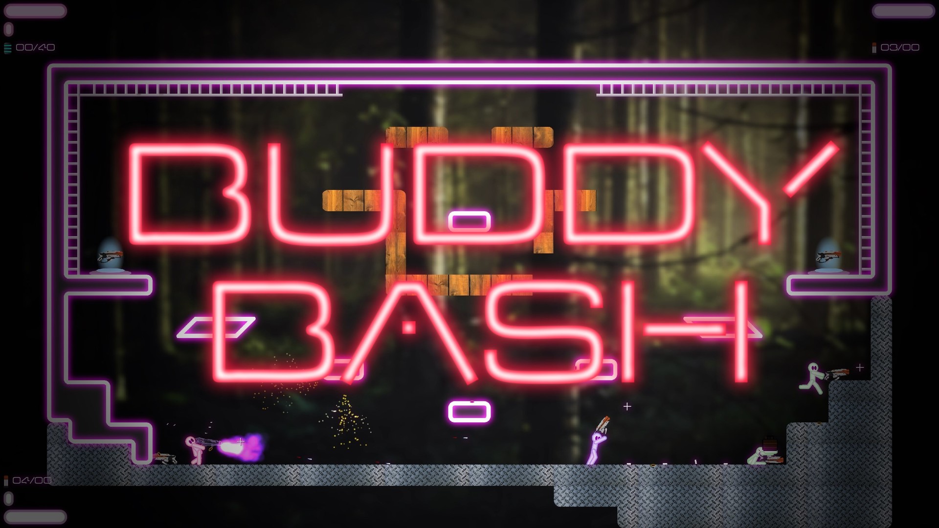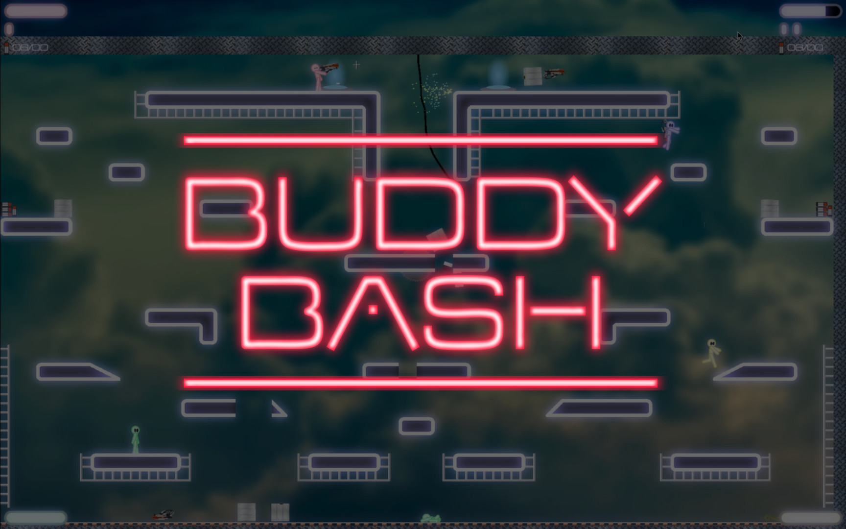Buddy Bash is a physics-based single and multiplayer 2D platformer arcade game that combines parkour moves and firearms into a cute, yet brutal, cocktail of friendly competitive fun!