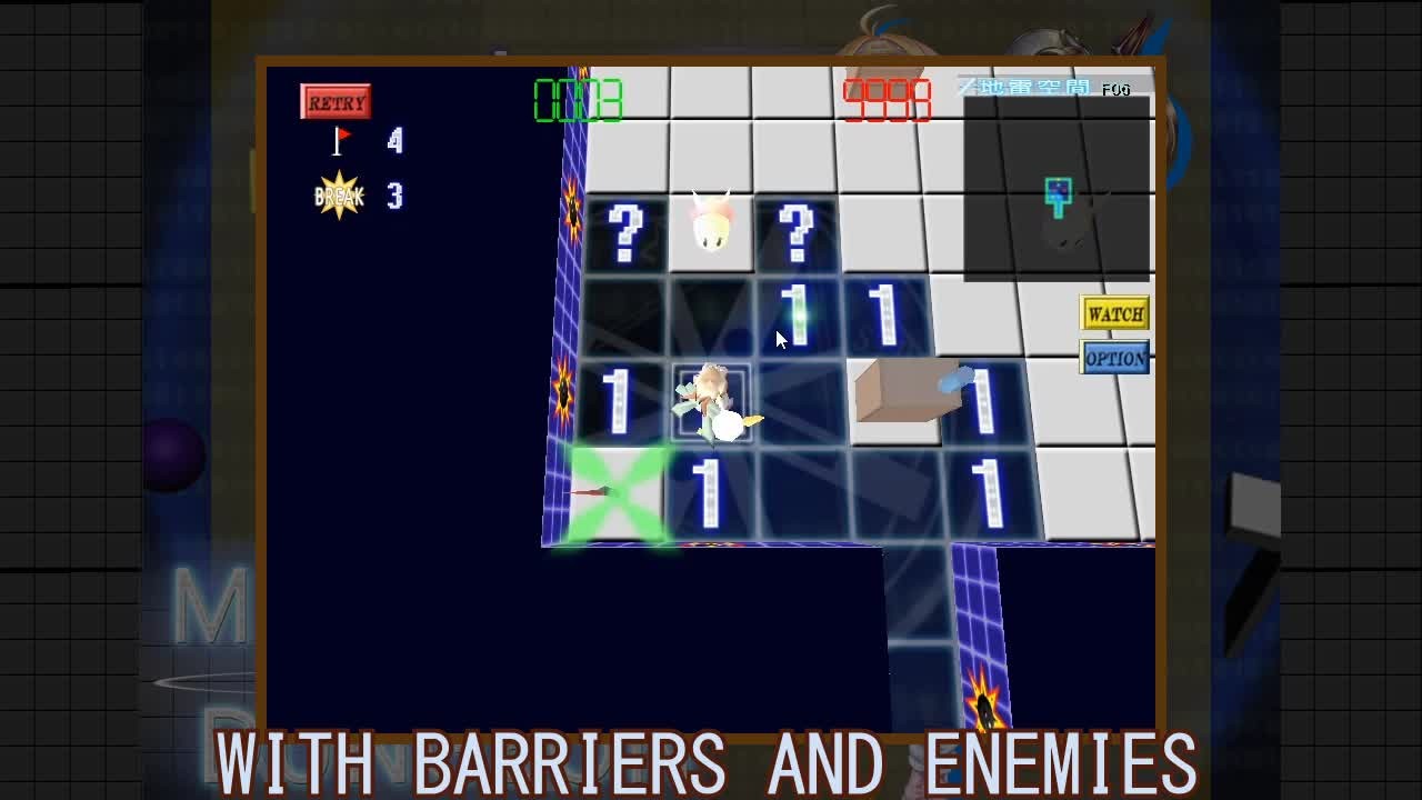 A Minesweeper game with a cute character, the control like a action game, and there have barrier objects and enemies.