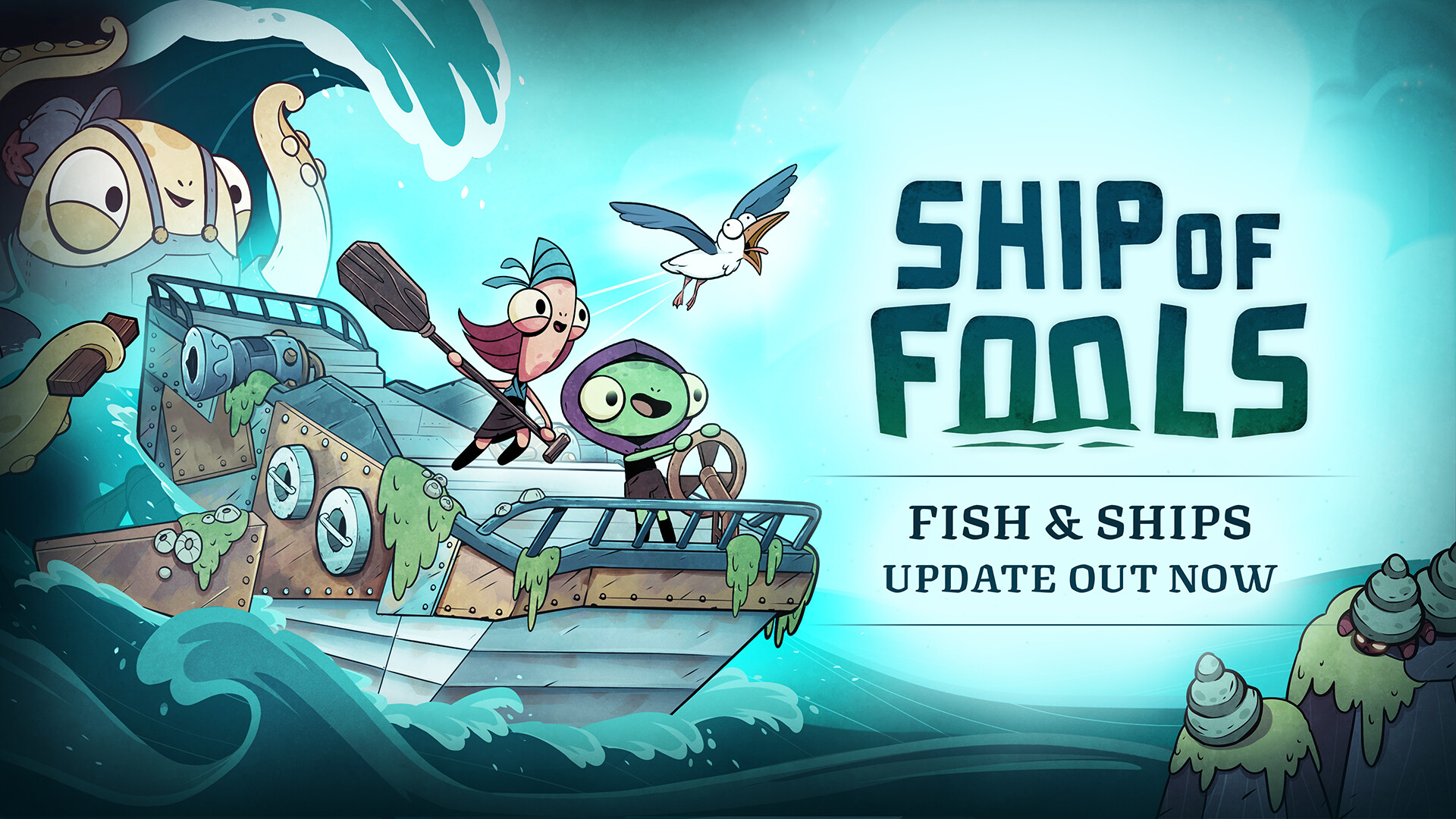 Ship of Fools is a seafaring cooperative roguelite. Set sail, man the cannons and battle sea monsters through the tempestuous seas of the Archipelago. Are you fool enough to stop the Aquapocalypse?