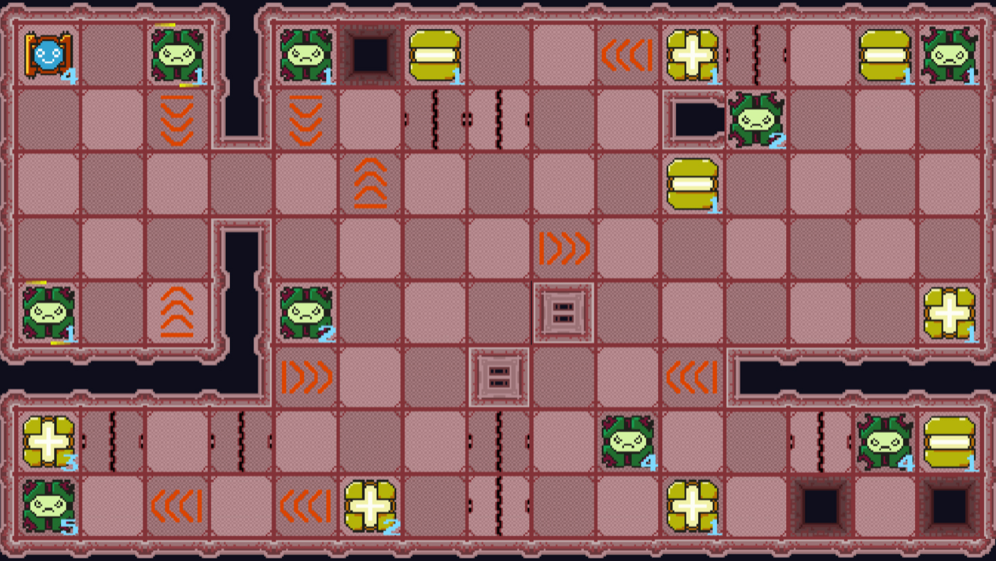 M.U.S.T. Repeat is a logical puzzle game in which tiny robot Q.T. uses the Repeat mechanic to navigate the rooms and defeat enemies. The higher the Repeat is, the more difficult it is to navigate through the room, but you have to increase your Repeat in order to defeat the higher level Guard Bots.