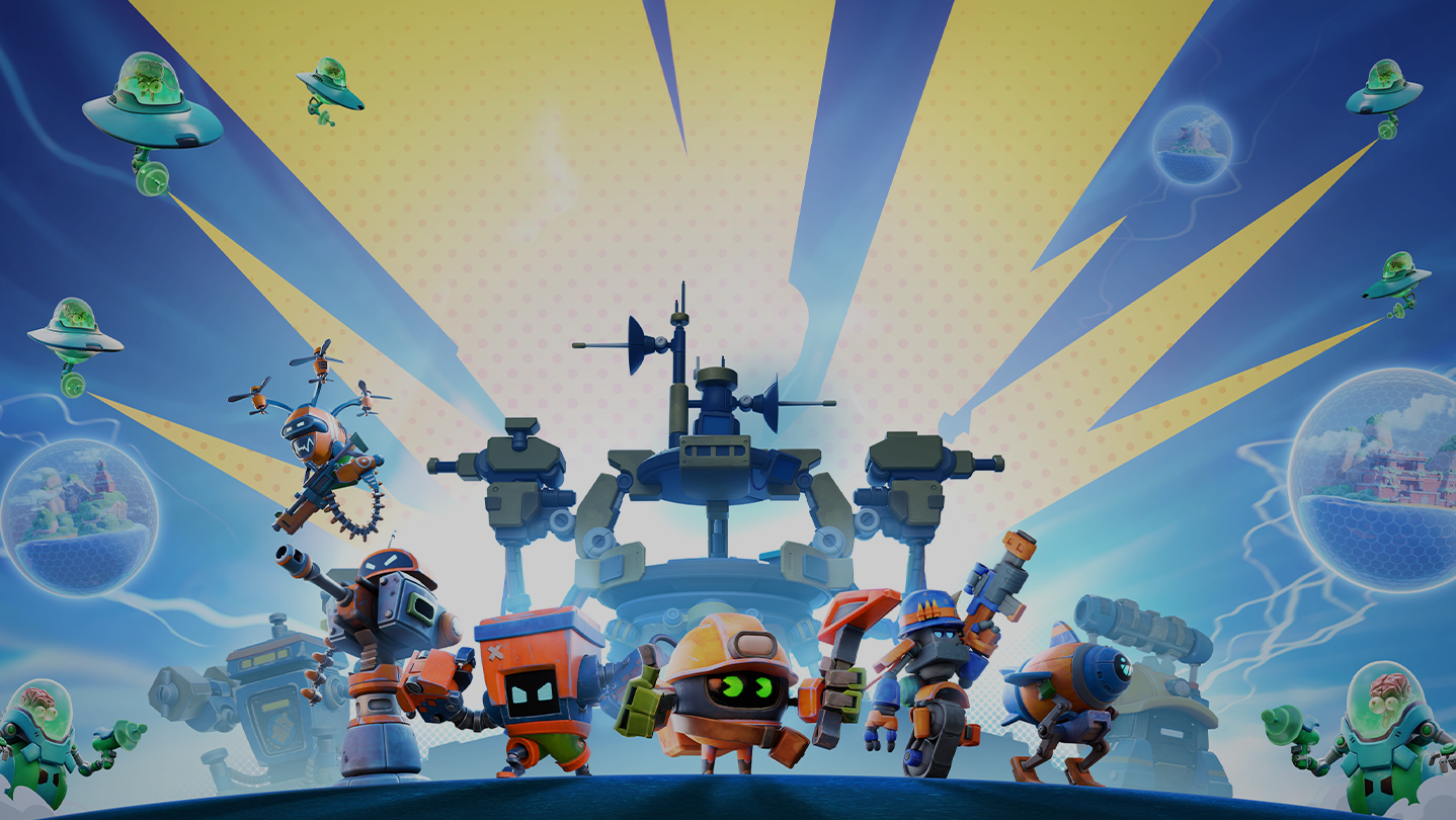 An action-strategy game where you gather Brainium, build a base, and command your army of bots to defeat the freaky Brains-in-Jars aliens. Lead from the front with your hero, Chip or Clawz, or both in co-op. Look out for ejected alien brains, you can squish ‘em!