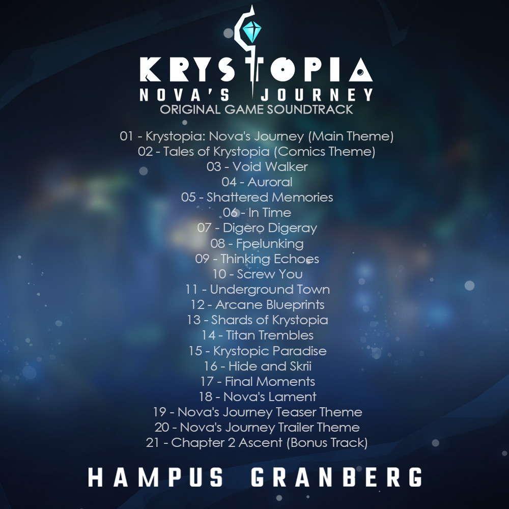 The Original Soundtrack of Krystopia: Nova's Journey, MP3 and FLAC, 72-minutes of music.