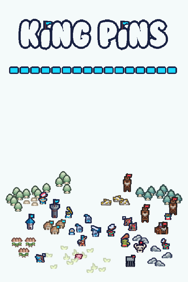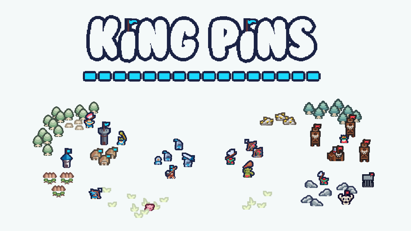 King Pins is a small scale real-time strategy game. Collect resources and expand your territory while defending your main unit: the king! If your king dies, you lose!