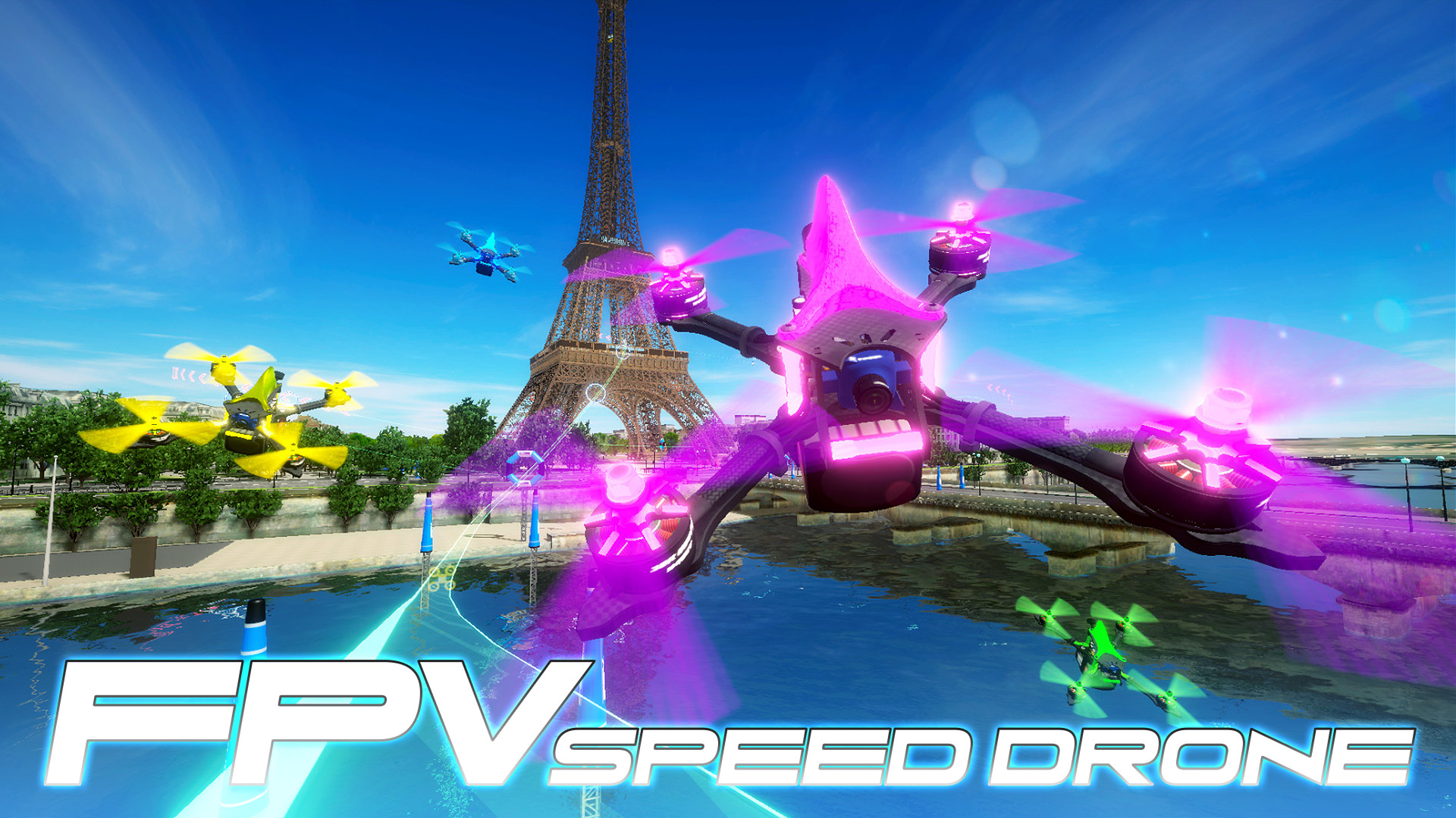 The FPV Speed Drone is set in an environment where an actual international game was held. It provides a realistic FPV drone racing flight experience. Compete with your friends and set the best record!