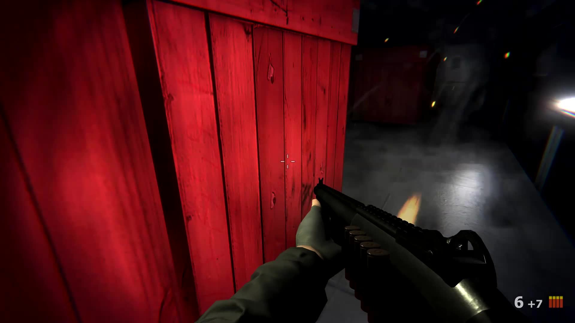 A first person puzzle shooter. Shoot boxes, push bombs, fend off enemies, find a way out of laser-mechanical traps.