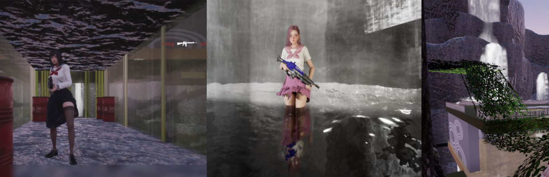 A land Beyond The Waterfalls. Players compete in a death match with the victor being the first player to reach 15 kills. Good luck all players.