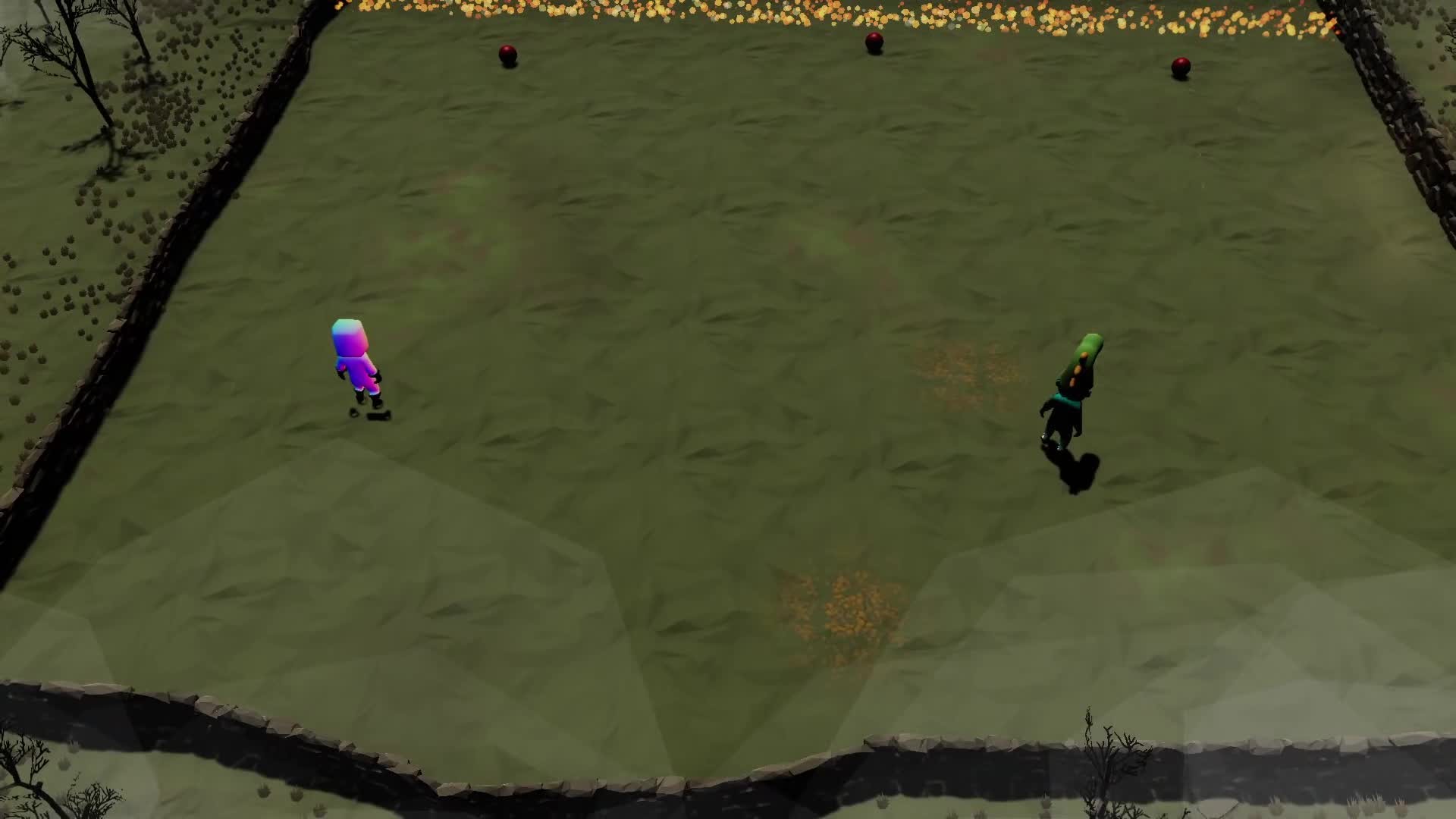 Battle Ball is a goofy online multiplayer game. Play with your team in a 3 v 3 game of loose-rules dodgeball meets twin-stick shooter. Play with your friends or knock them out by teaming up with random players!