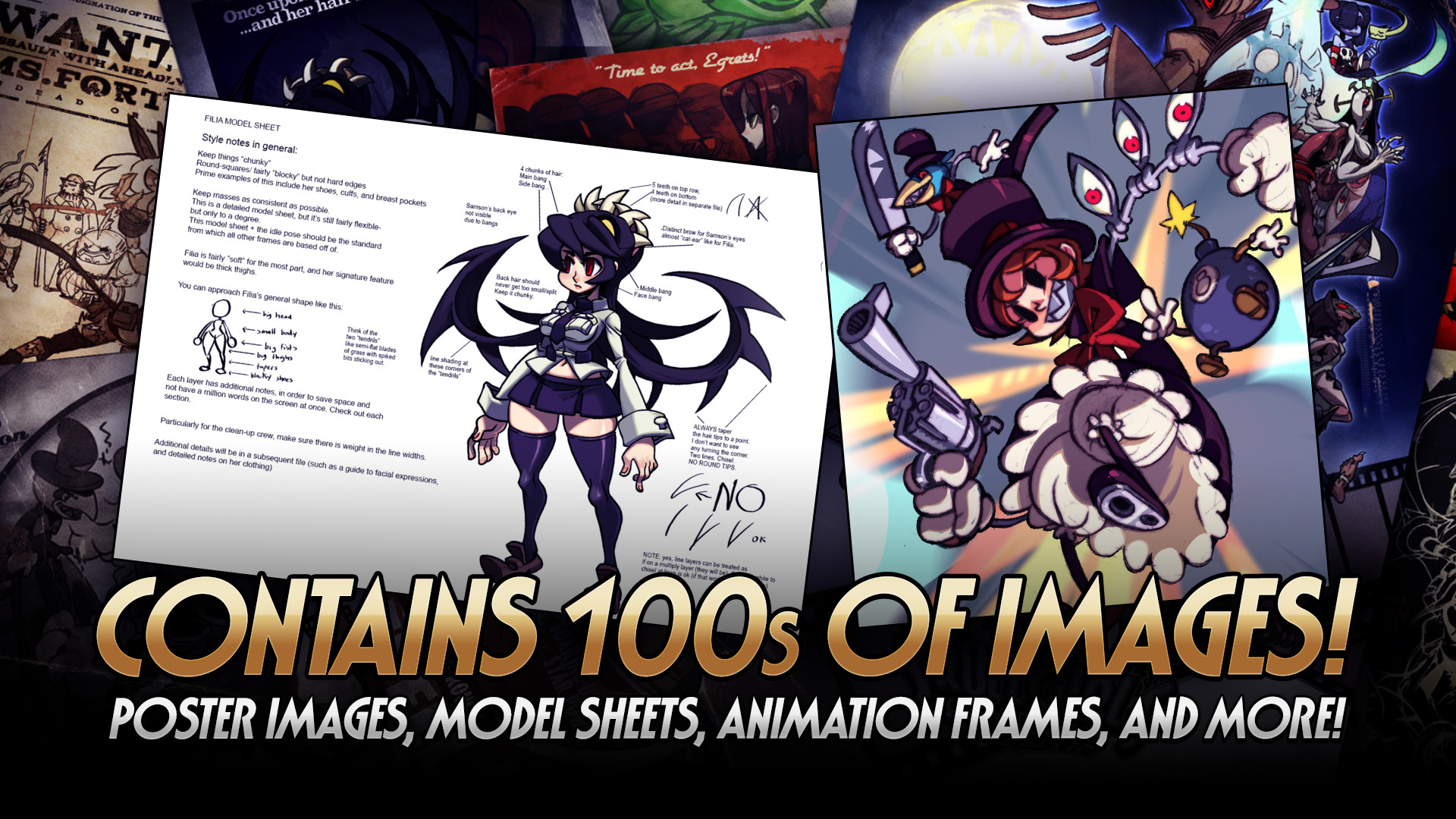 The all new Skullgirls Digital Art Compendium is the ultimate collection of behind the scenes materials that were used to create the stunning, hand-animated fighting game! (including EVERY FRAME of animation in the game)