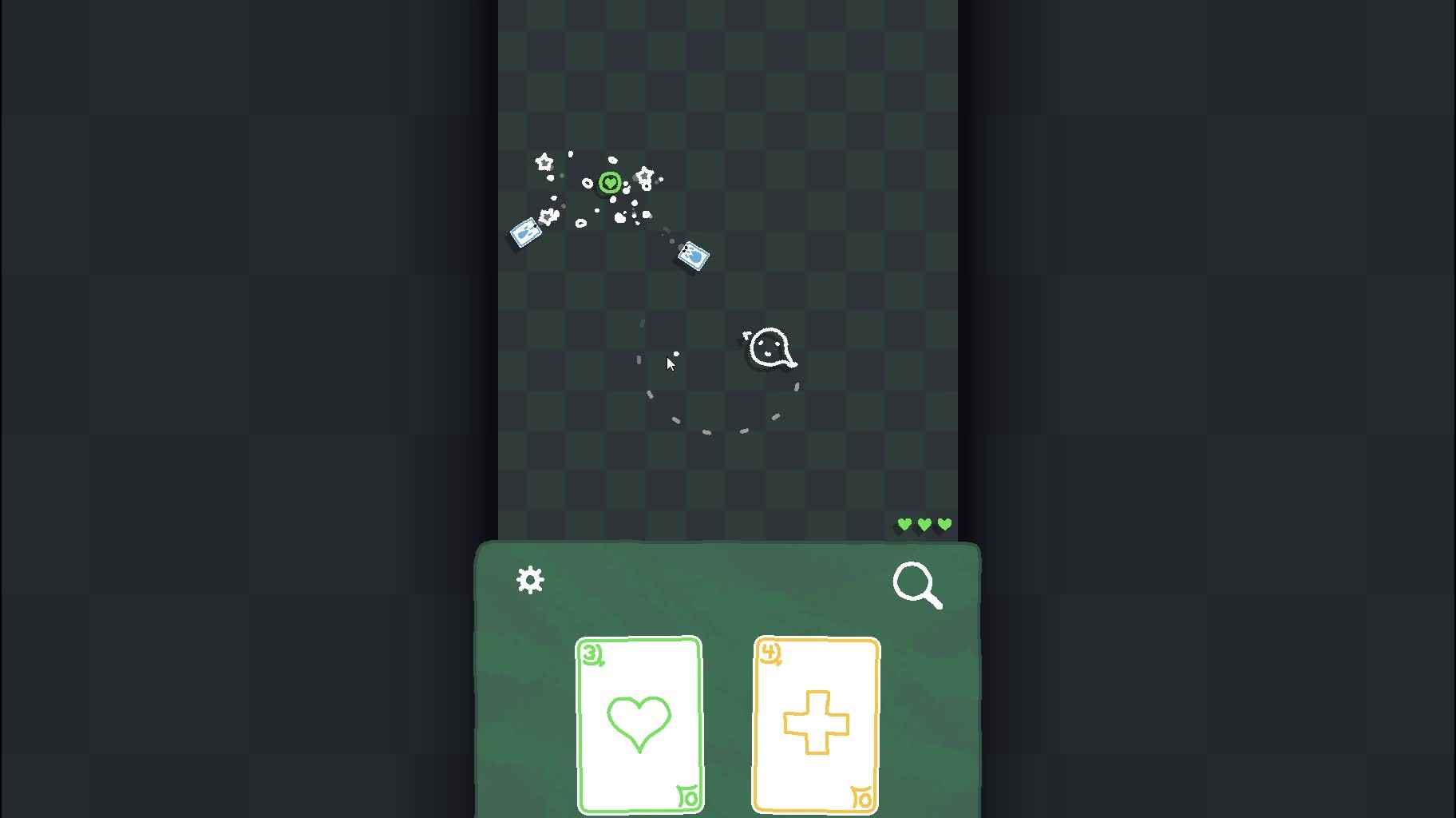 Heck Deck is a bullet hell card game where all the bullets are cards and time only progresses as you move. Explore 5 stages full of unique enemies and bosses, discover dozens of cards, and visit shops to buy and sell cards for health!