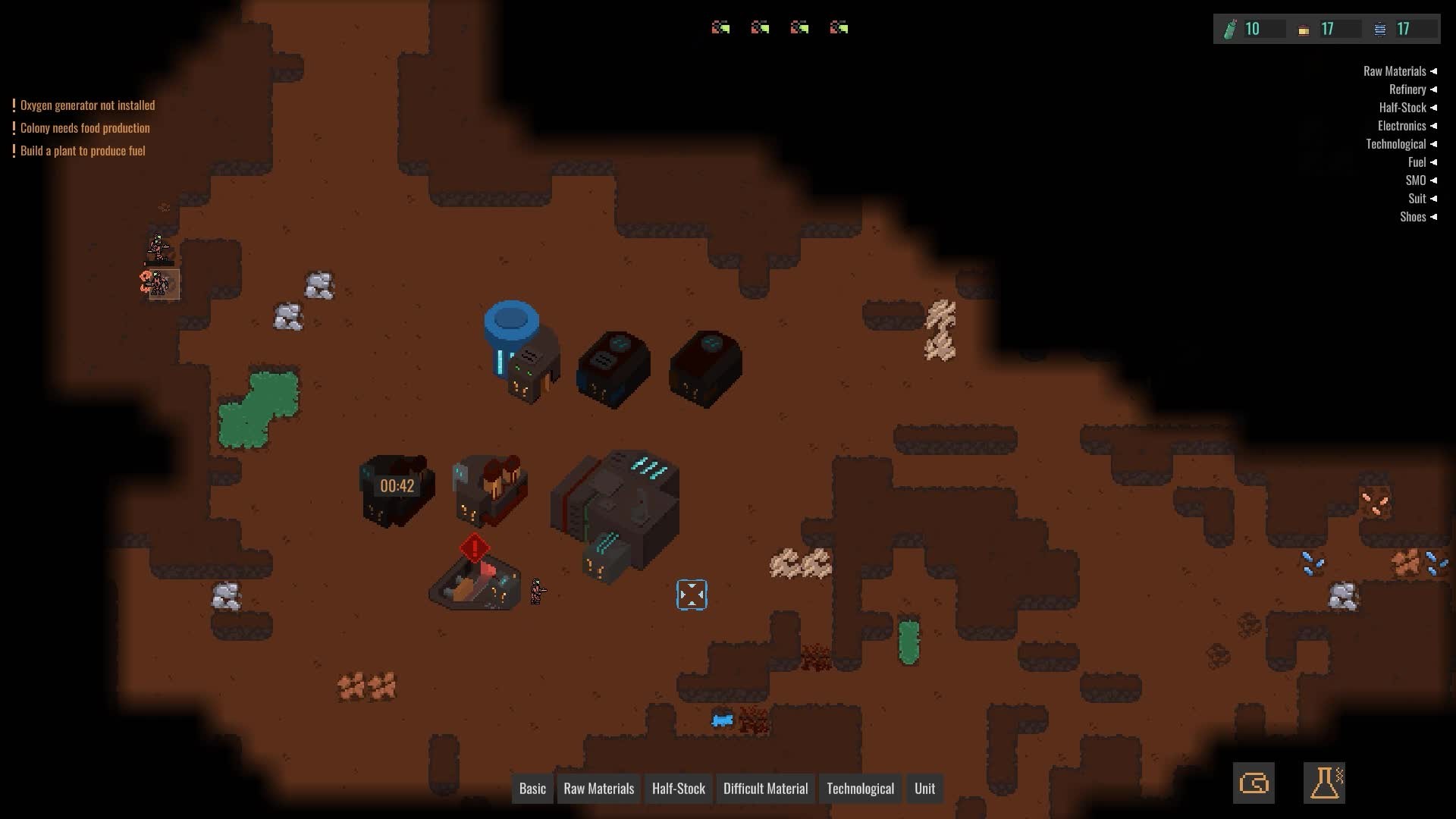You control a small colony in the underground of an unknown planet. Mine resources, build a base, explore the world and technology. Supply your colonists with oxygen, food and energy so that they can carry out their tasks.