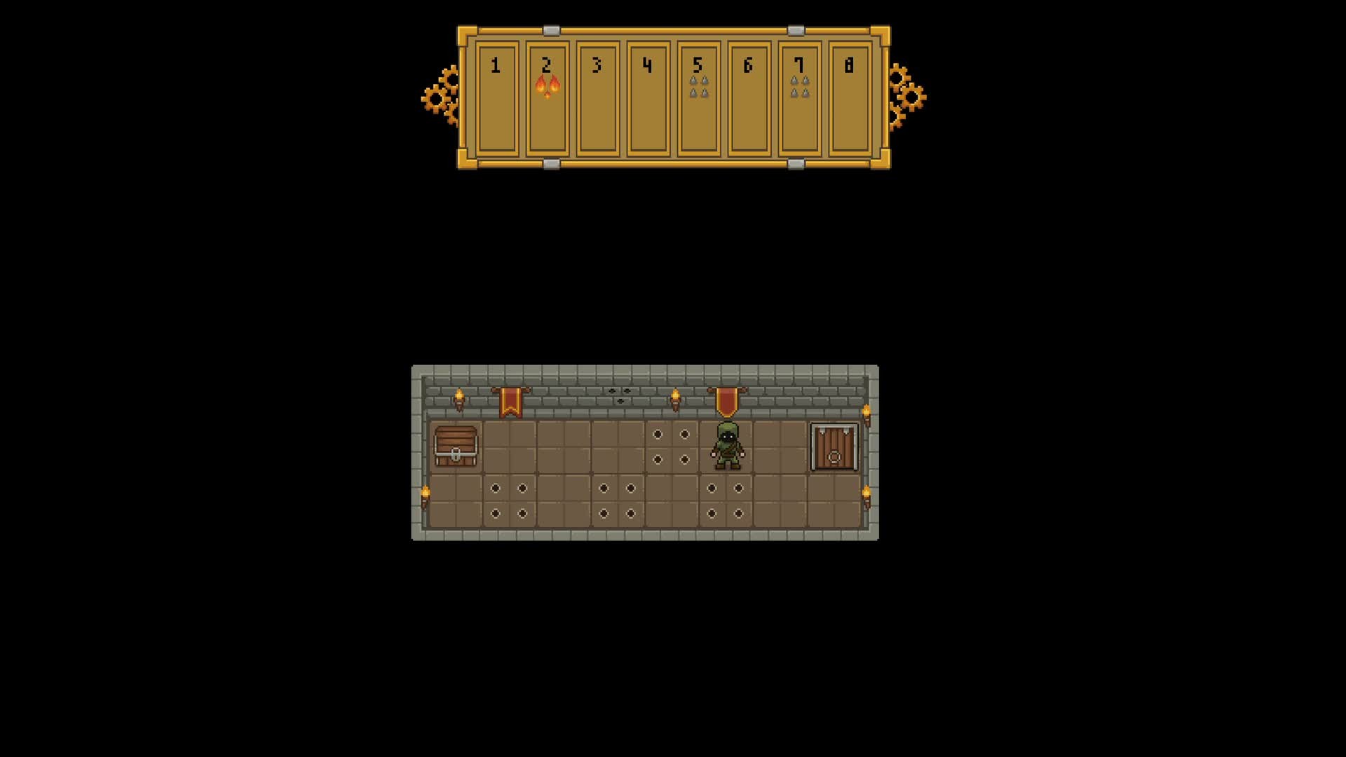 Treasure awaits within the dungeon! There are no guards... but the dungeon was built to protect itself until the end of time, its traps operating like clockwork! Your task is to get the gold and escape alive!