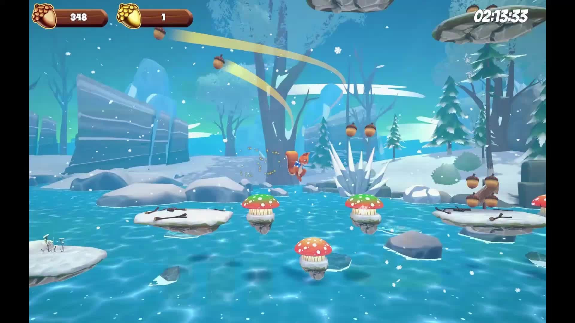 An angry bear stole a whole, large jar of nuts. Fortunately, he loses them on the way. Collect all the nuts from the board, catch up with the bear and deal with him once and for all!