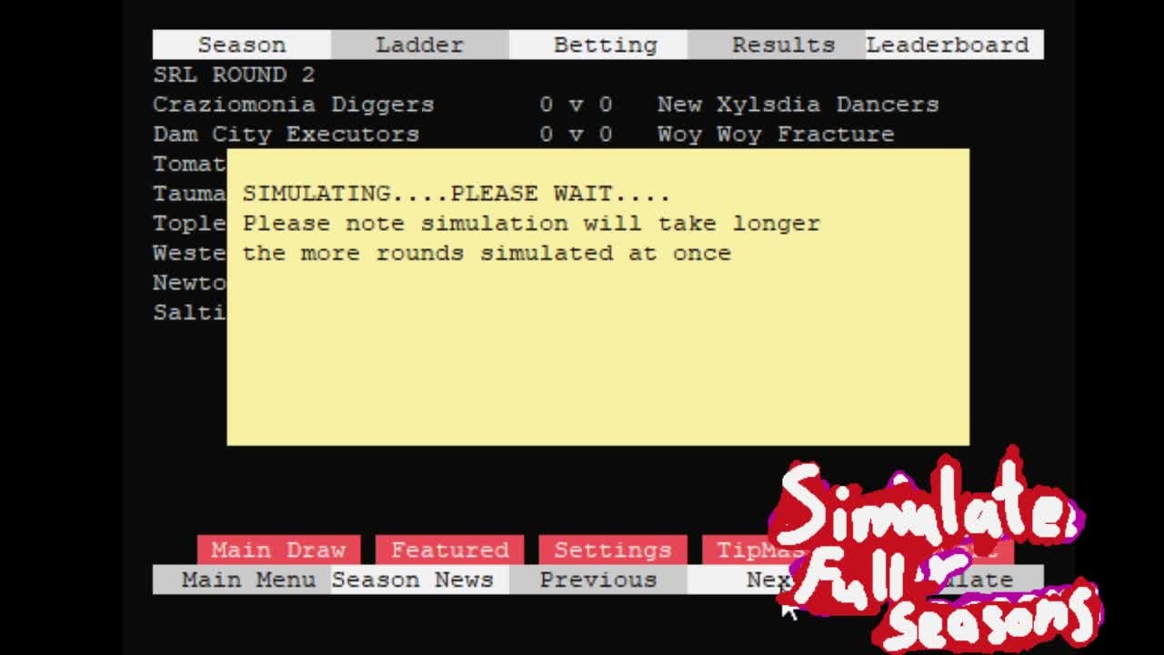 SYDE Rugby League Simulator is a simulator that runs entirely inside the windows command console. Simulate customizable Rugby League seasons with randomly generated teams & players.