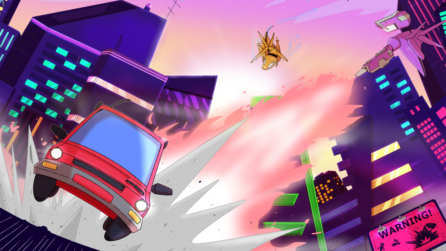 Strive to be the top driver as you combo your way through! Soar across the city's skyline as you leap between rooftops and smash weapon-wielding robots! Scrape your way to the next finish line in this modern golden-age styled arcade platformer.