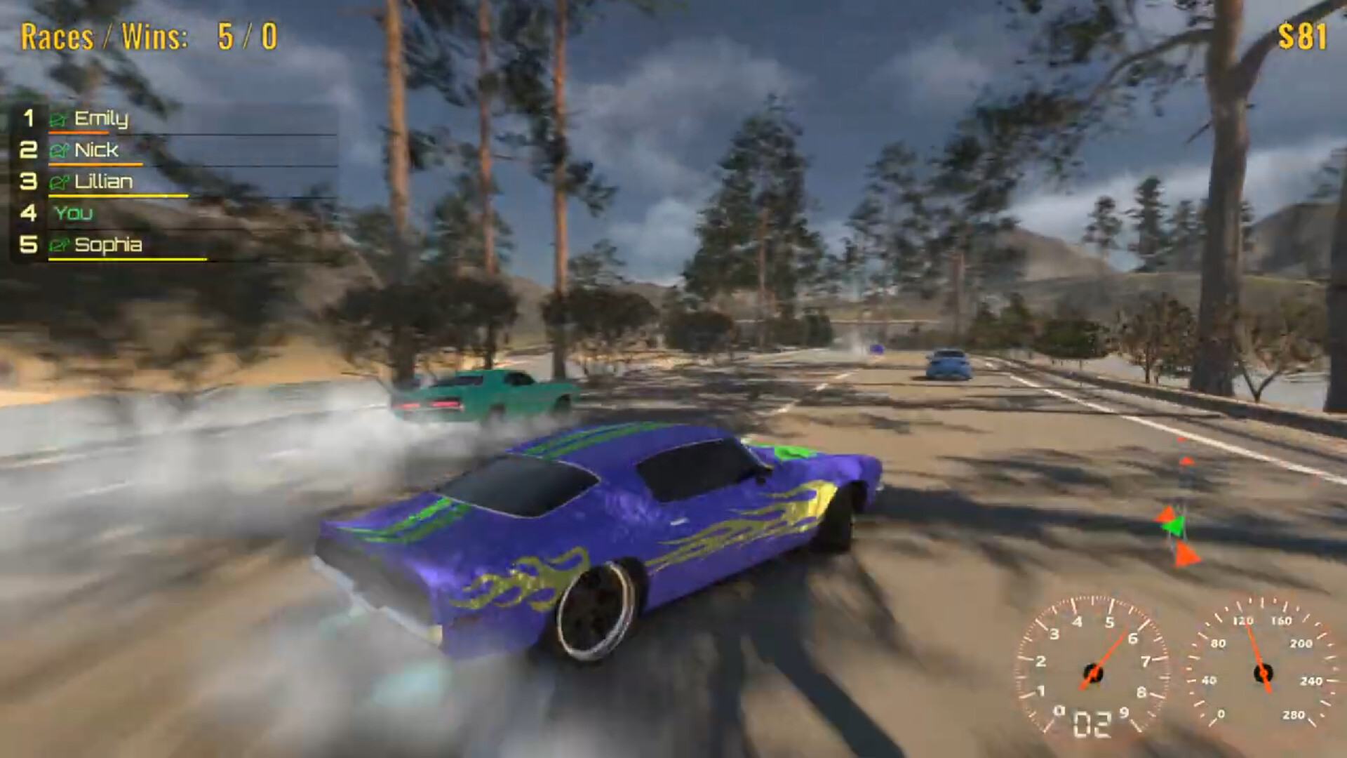 Road racing game. Beep at any traffic driver to start the race! Connect more drivers at any time! Earn money on road races, tune or buy a new car, participate in more racing events. Keep on racing!
