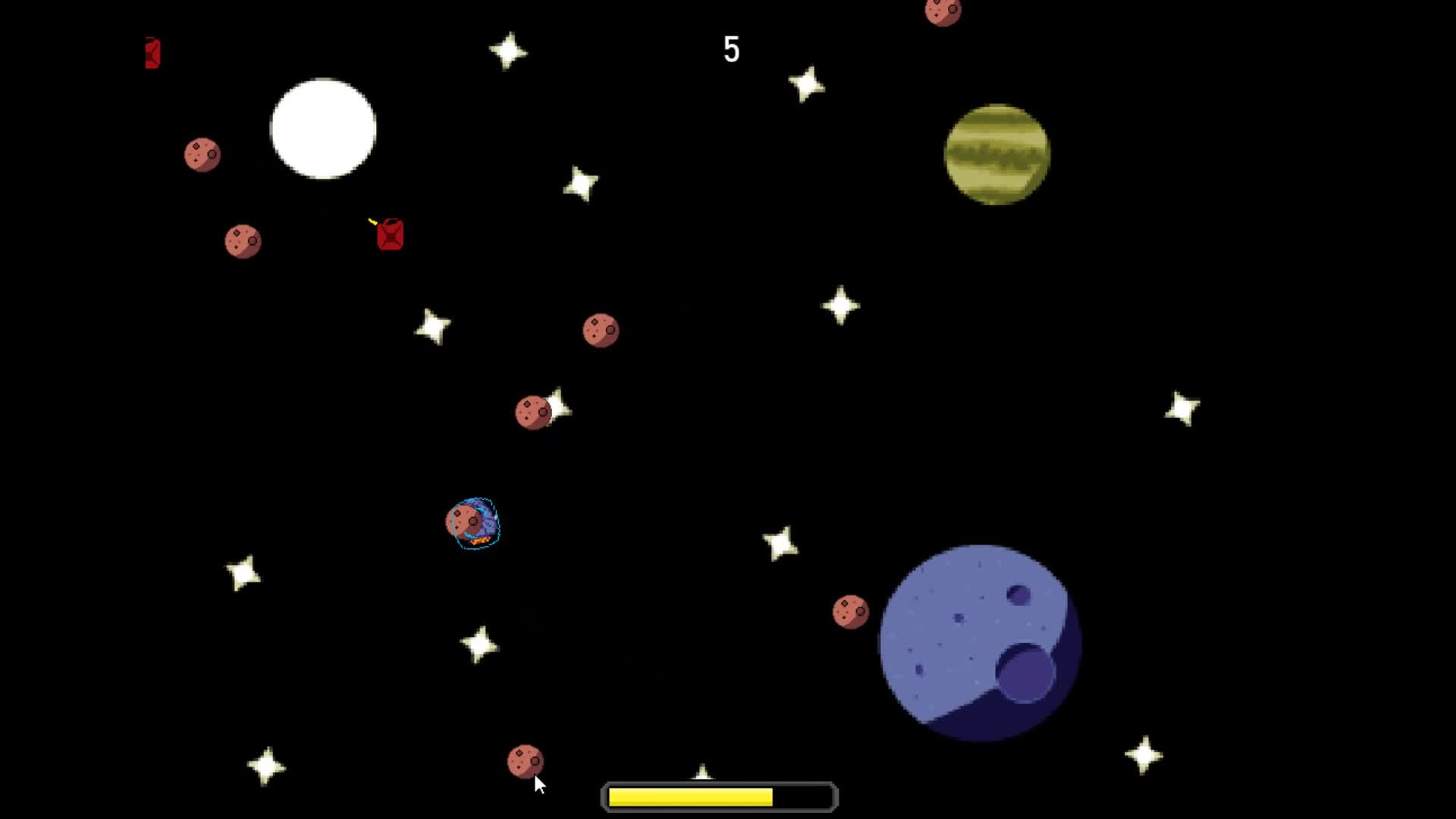 You're stranded in space in an asteroid field. Use your ship to smash through fuel-rich asteroids for points and fuel, and use any power-ups you find along the way. But remember, an empty fuel tank is just as deadly as an asteroid. The void of space is a tough place to be, but you can't stop now.