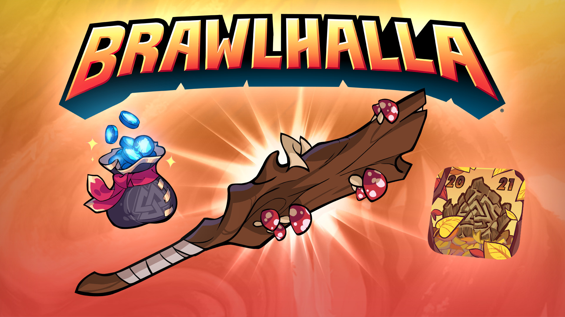 The Autumn Championship 2021 Pack is here! This limited-time pack contains 300 Mammoth Coins, the Autumn Championship 2021 Avatar, and the exclusive Fungal Flourish Greatsword Weapon Skin. Show off your dedication to Brawlhalla esports!