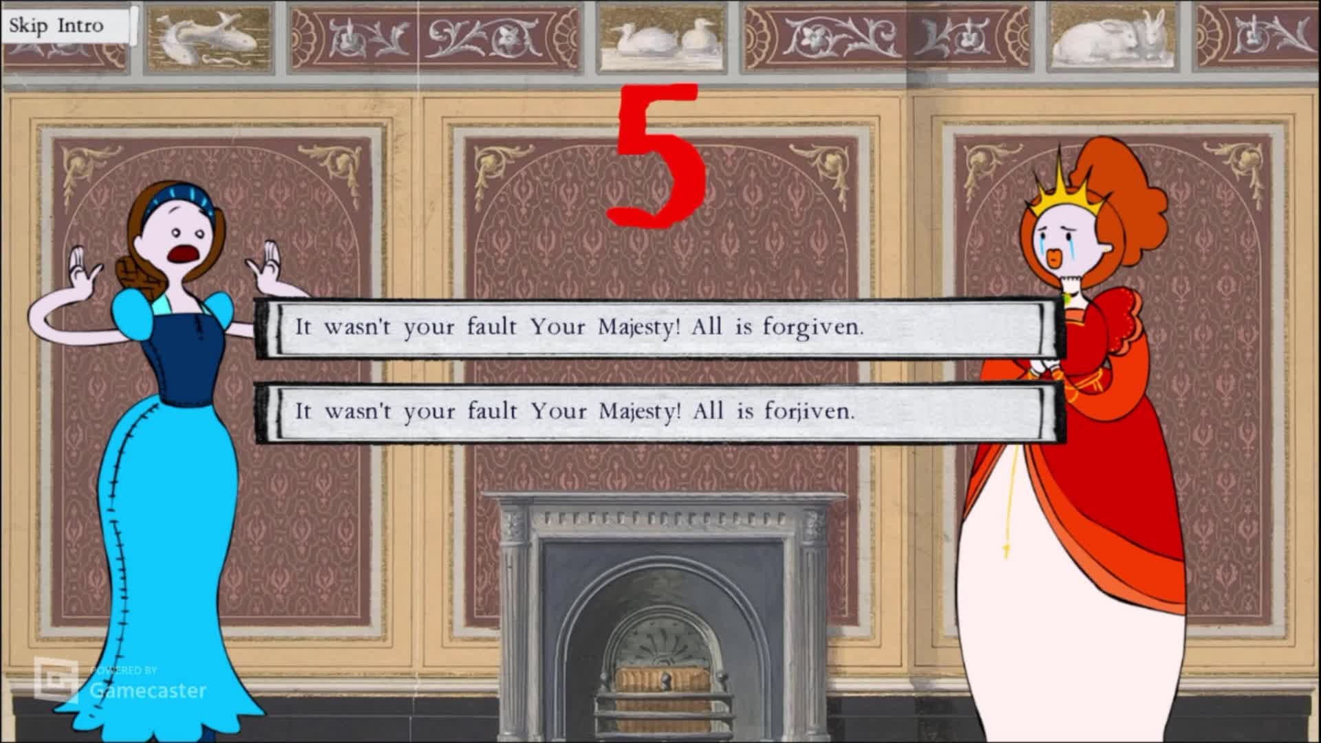 A fast-paced visual novel game where you must survive the whims of a mad queen, with a unique combination of classic art scenes and cartoon people