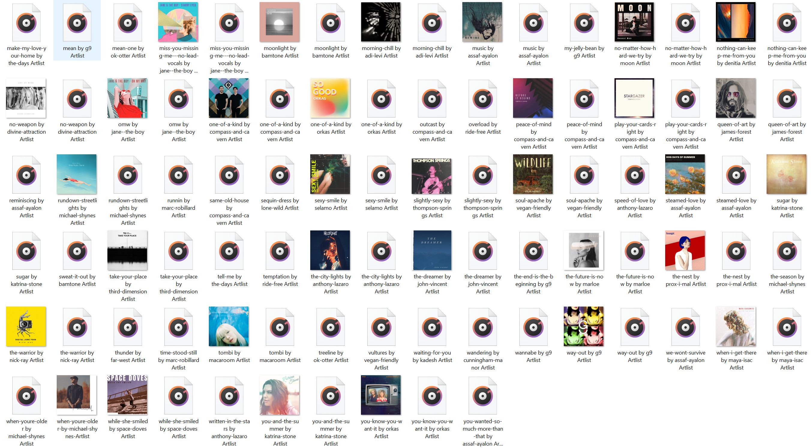 100+ different indie songs with vocals.