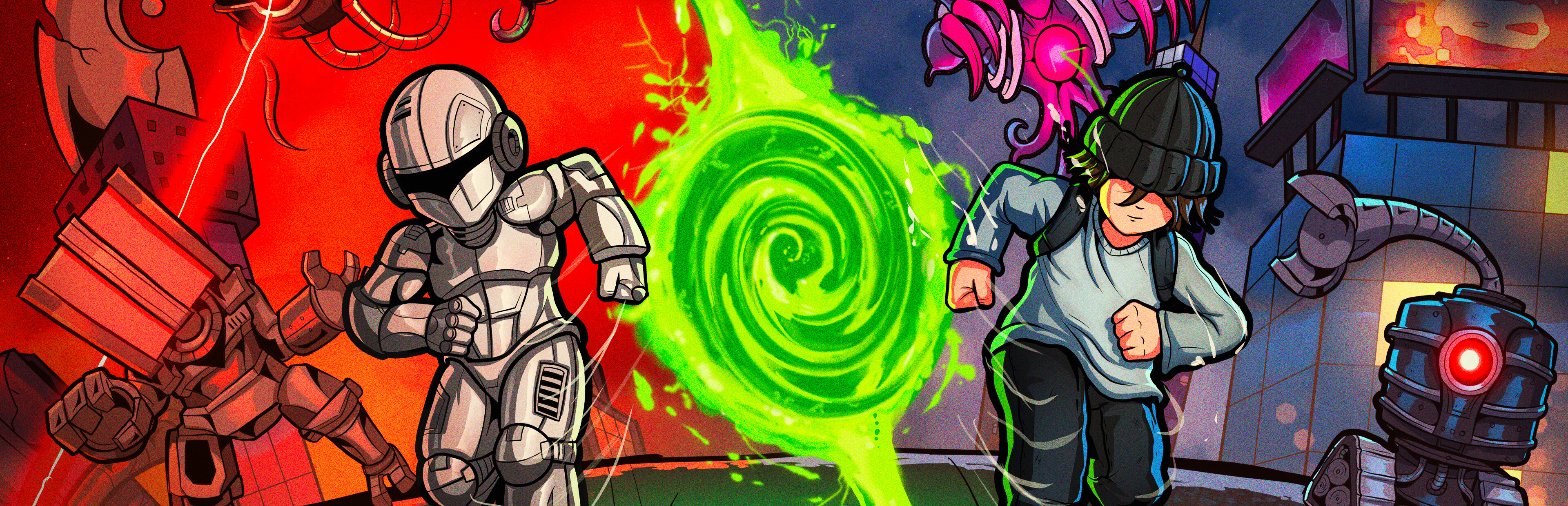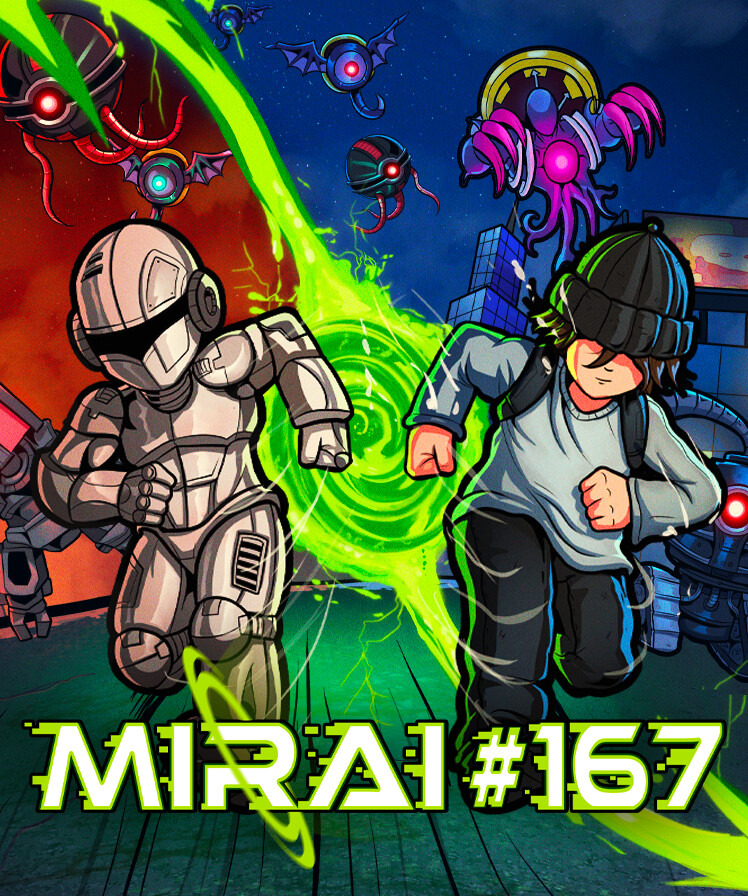 MIRAI #167 is a 2D pixel-art runner where you control two characters at once, rewinding time and jumping through portals. Embark on a frantic adventure to save humanity in a world where AI surpasses human control - upgrade your characters, break records and rewrite history before it’s too late!