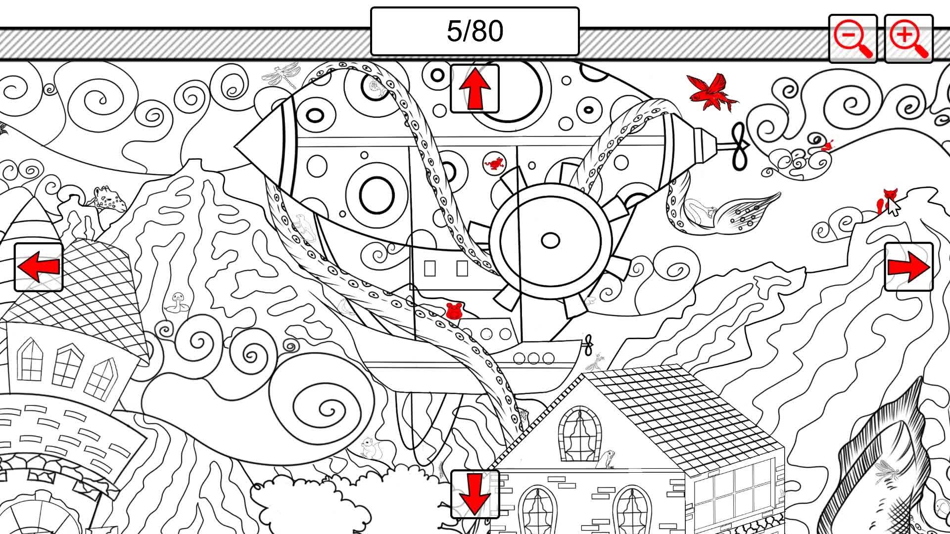Is a game in the genre of "hidden object", in which you need to find all the animals in a large location drawn in the style of "doodling". There is a medieval castle on the game location, and in front of the castle there is a watermill with a pond