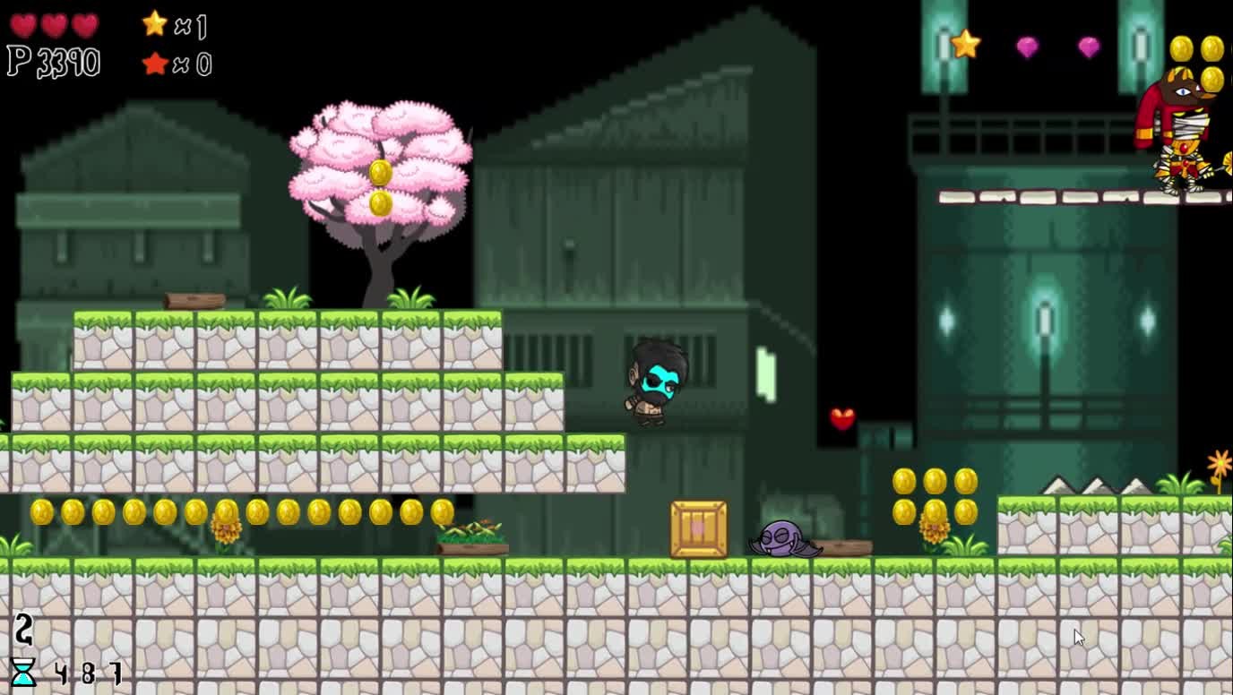 Indie platform game in which you control the blue barbarian man who has the sword to hit his opponents. You can also jump on your enemies' heads to defeat them. You need to collect items and defeat the bosses to win the game.