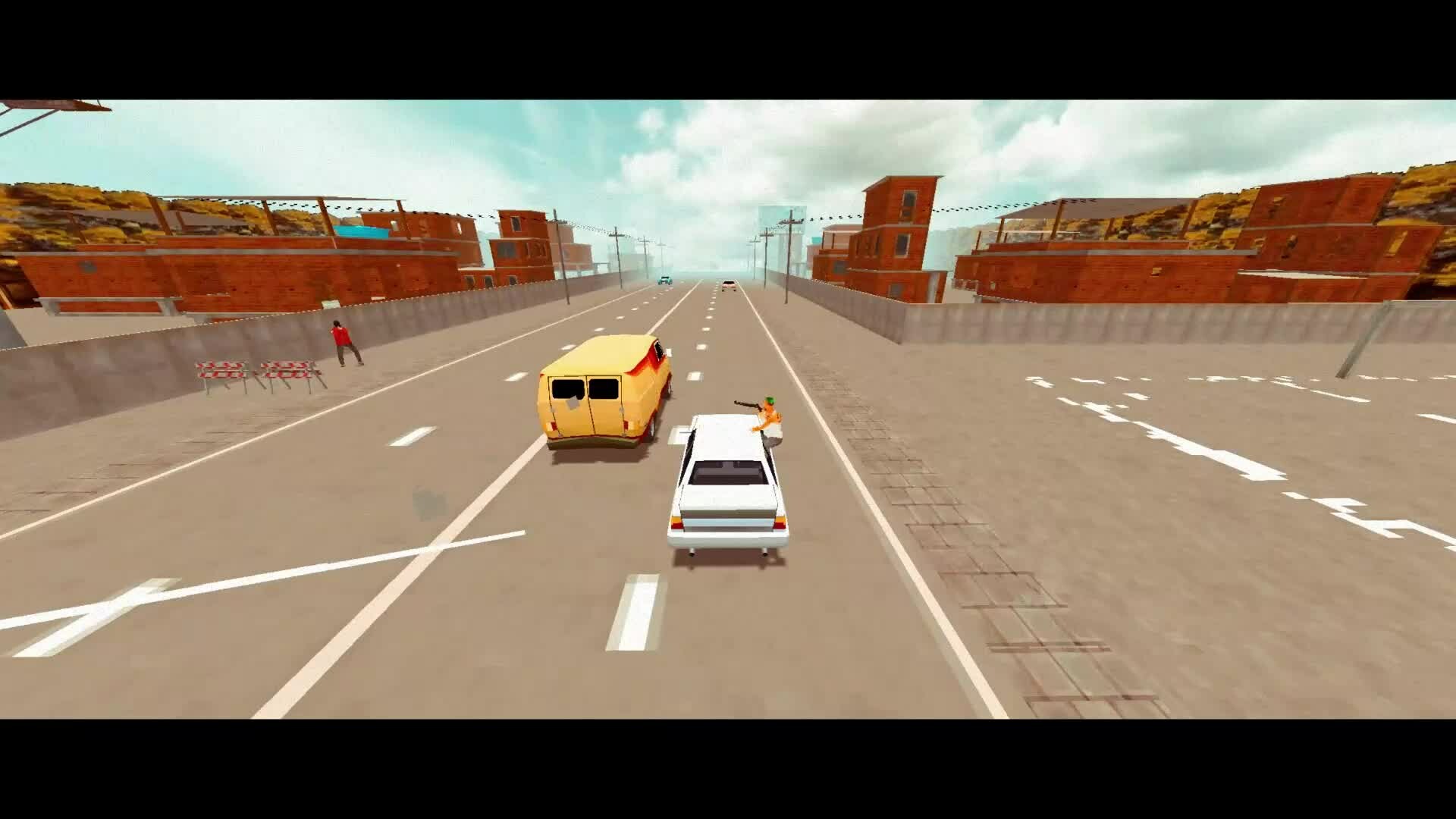 An action game where a couple races against time to recover stolen music, combining intense shootouts and rhythm-filled chases.