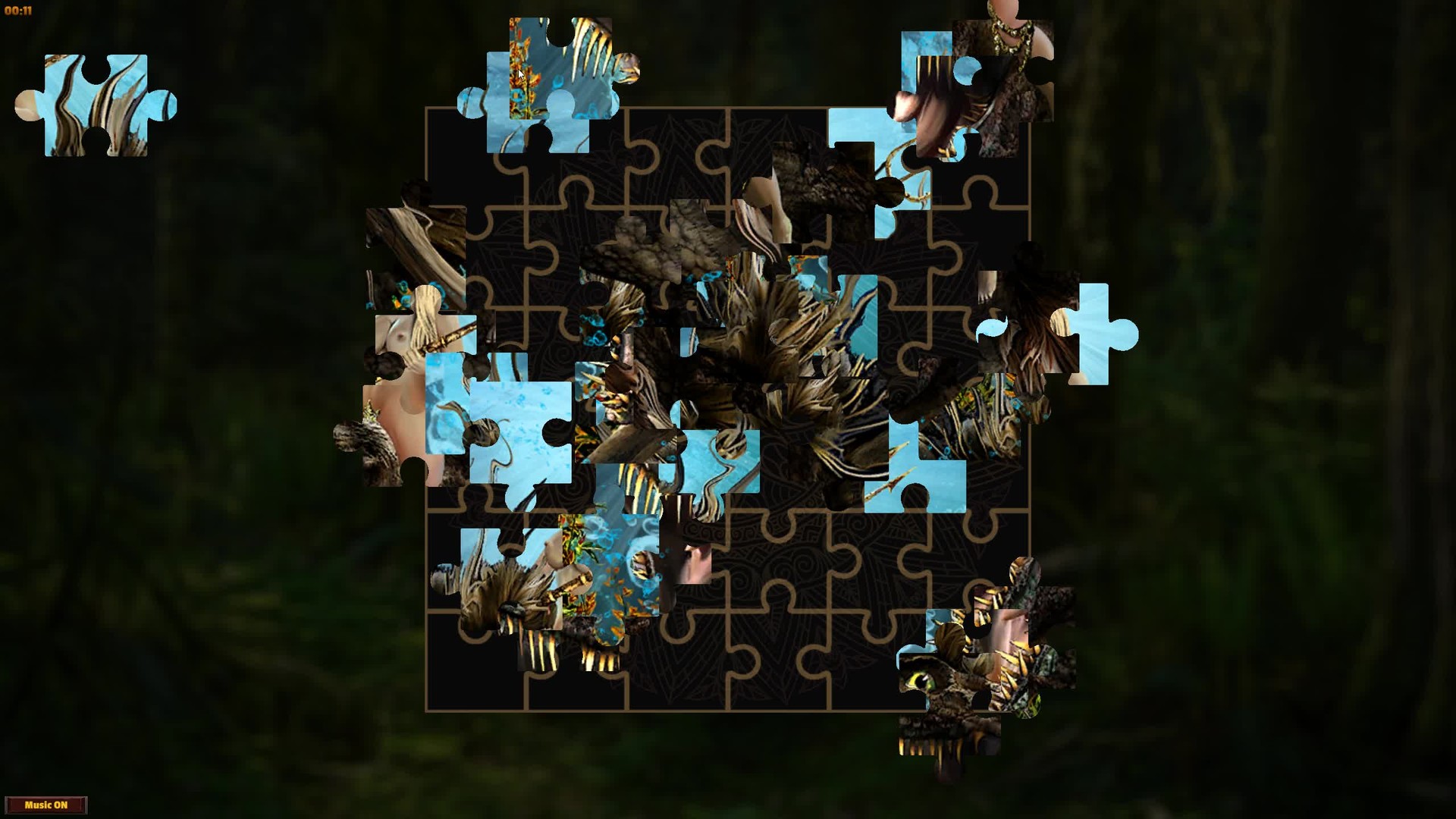 Challenging jigsaw and sliding puzzles with various levels of difficulty, featuring warrior female characters riding fantasy creatures.