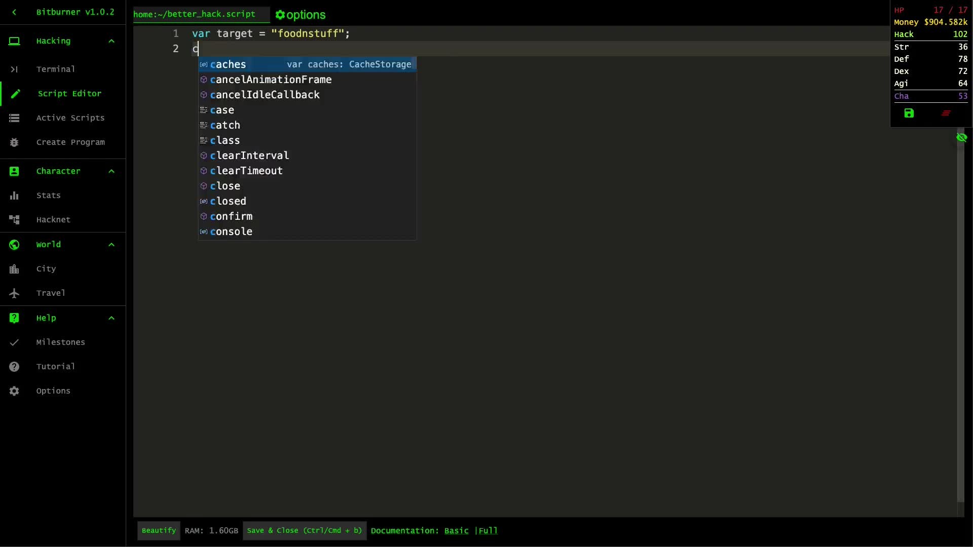 Bitburner is a programming-based incremental game. Write scripts in JavaScript to automate gameplay, learn skills, play minigames, solve puzzles, and more in this cyberpunk text-based incremental RPG.