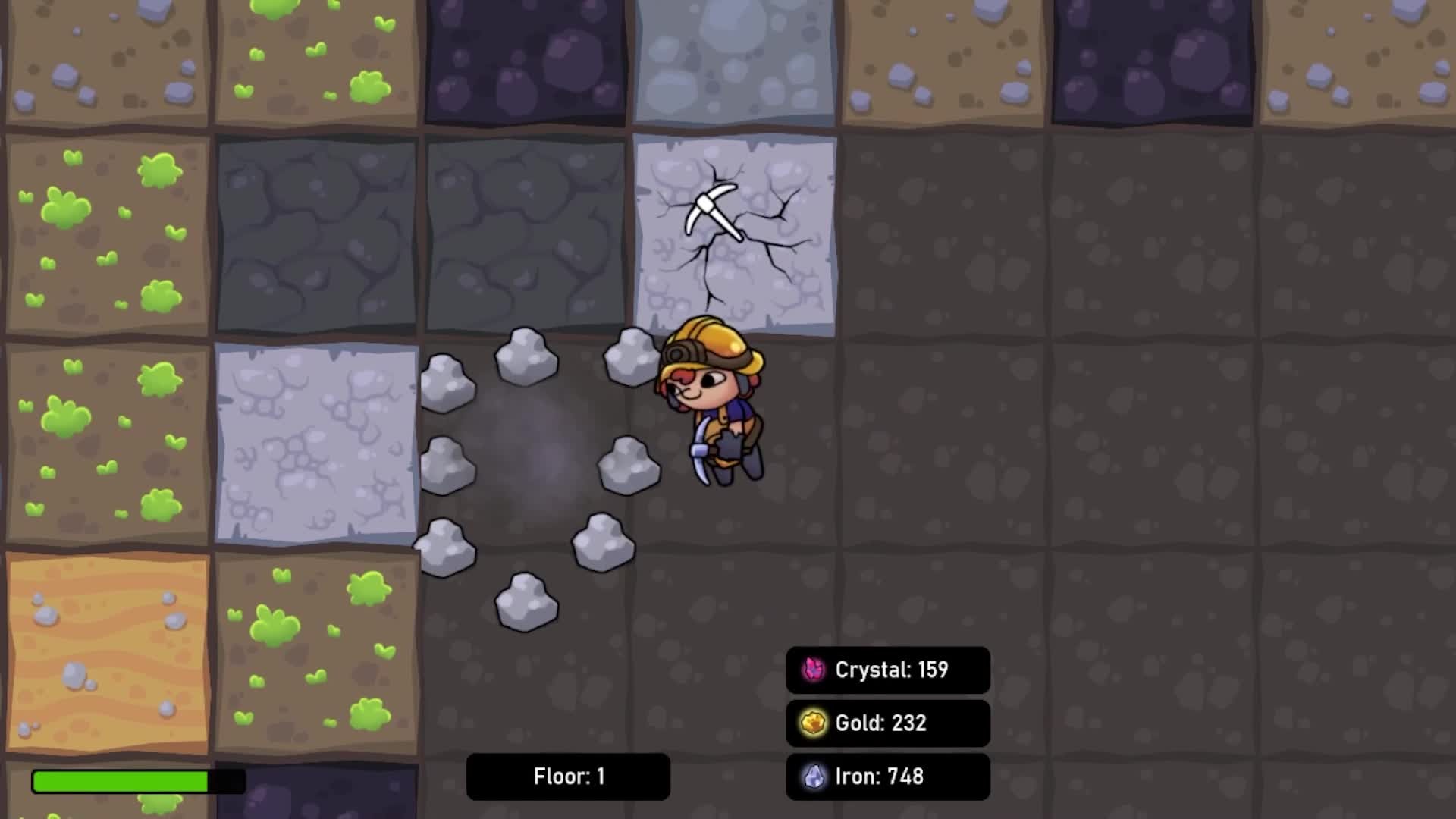 You are a brave digger who went in search of minerals! Alone, you have to find as many of them as possible and improve your outfit in order to move further and further each time.