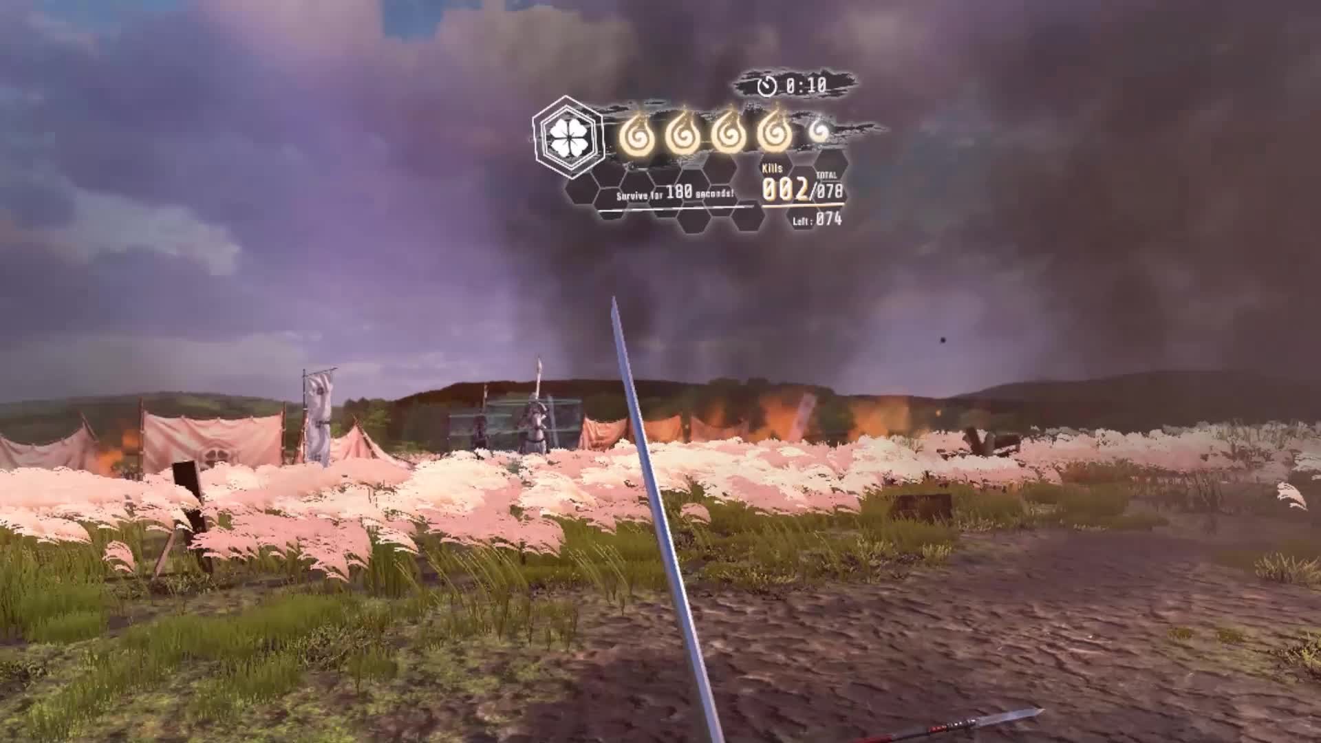 SAMURAI CHALLENGE is a VR Action Game which tests your sword skills in virtual worlds resembling battlefields on which samurai fought.