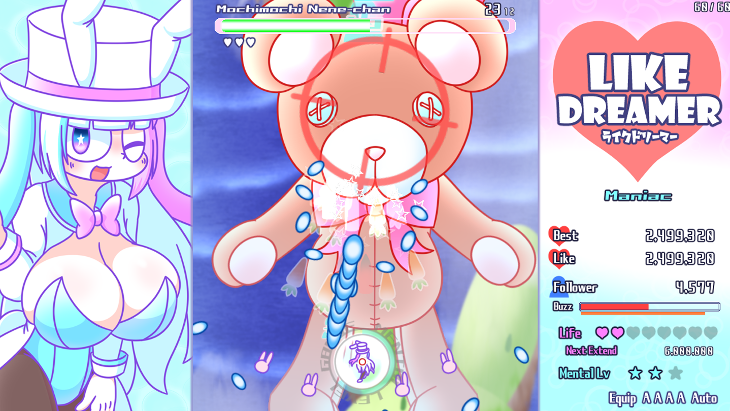 A pop and cute bullet-hell shooting game from Cosmo Dreamer "Outside". Both beginners and experts can enjoy speedy and active playing.