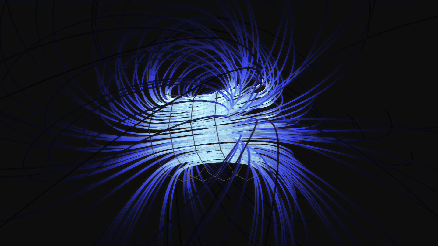 An interactive educational software for physics, offering 3D views of electric / magnetic fields and particle trajectories.