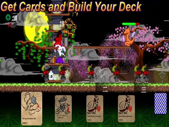 The mysterious Yokai Monogatari has been opened, unleashing Yokai into the world! Help Miko seal them away and restore peace to the village. Build your deck and summon animals to defeat Yokai in this side-scrolling platformer!