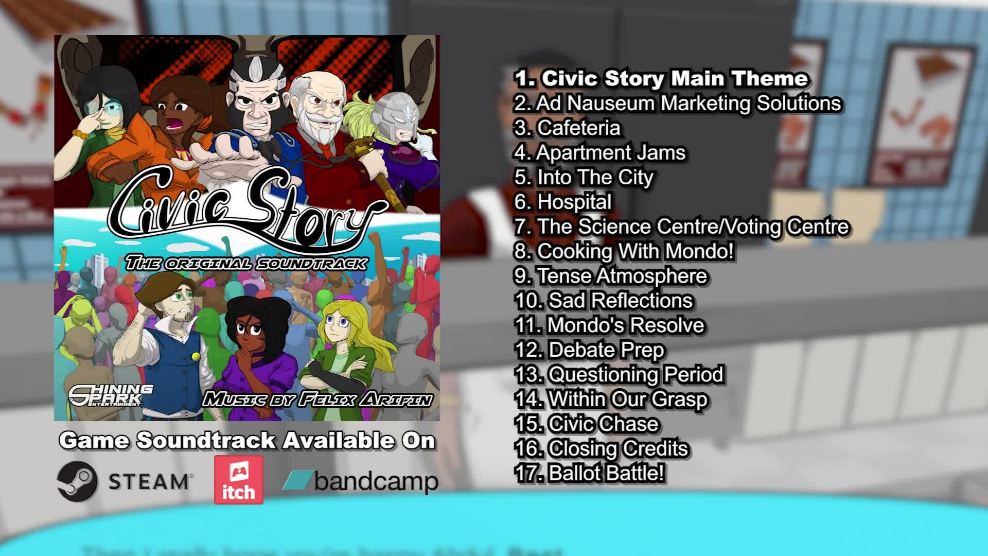 When a sudden election rocks the country, whose side are you on? In Civic Story, you'll encounter colorful characters & situations that show how the upcoming election affects you, your colleagues, and the nation in this comedic 8-chapter Visual Novel parody that helps you understand our world today.