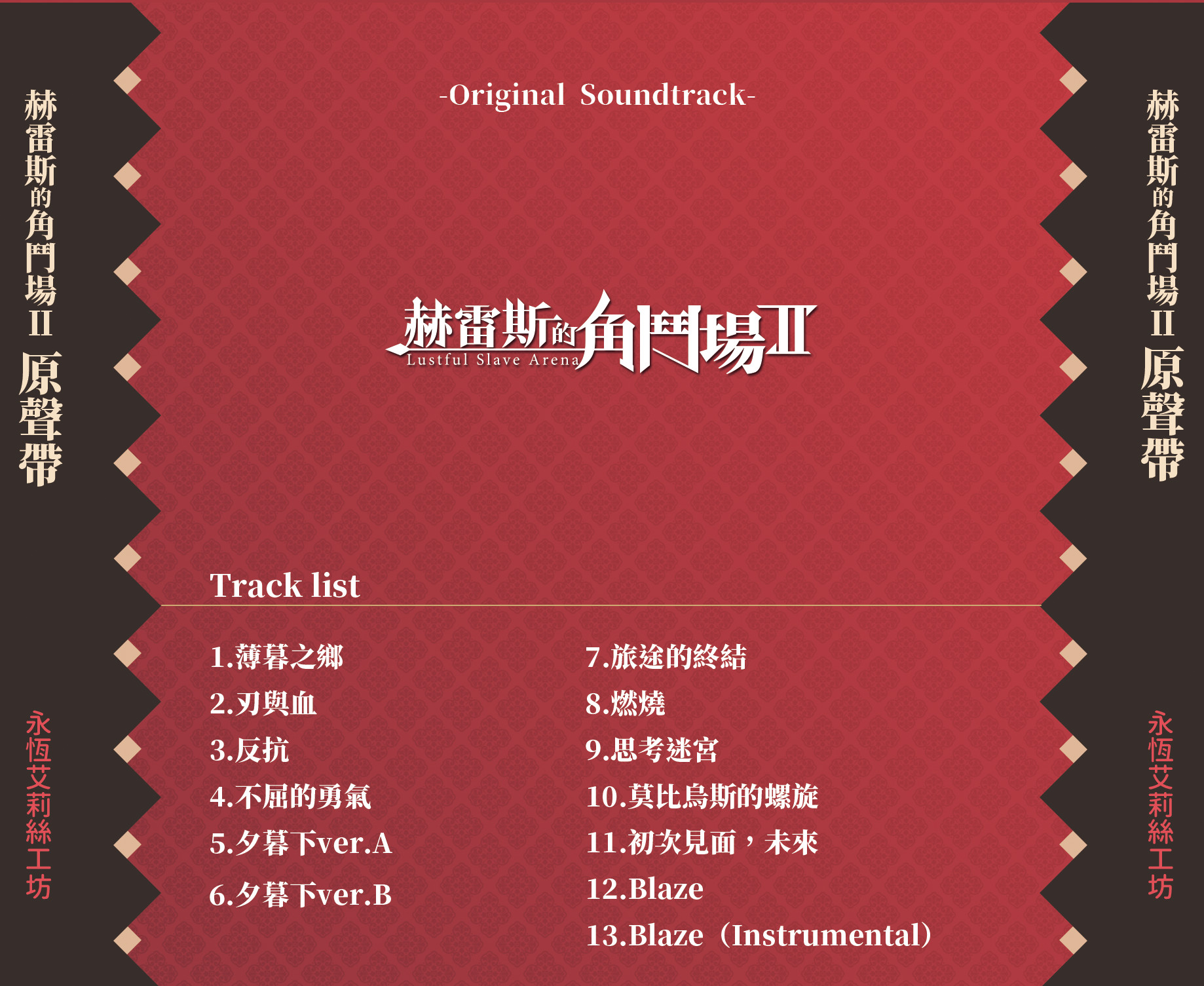tchinese 赫雷斯的角鬥場Ⅱ -Original Soundtrack- schinese 赫雷斯的角斗场Ⅱ -Original Sountrack- english Jerez's Arena Ⅱ -Original Sountrack- japanese ホレスの格闘場Ⅱ -Original Soundtrack- koreana 헤레즈의 투기장Ⅱ -Original Soundtrack- russian Арена ХересаⅡ -Оригинальный саундтрек-