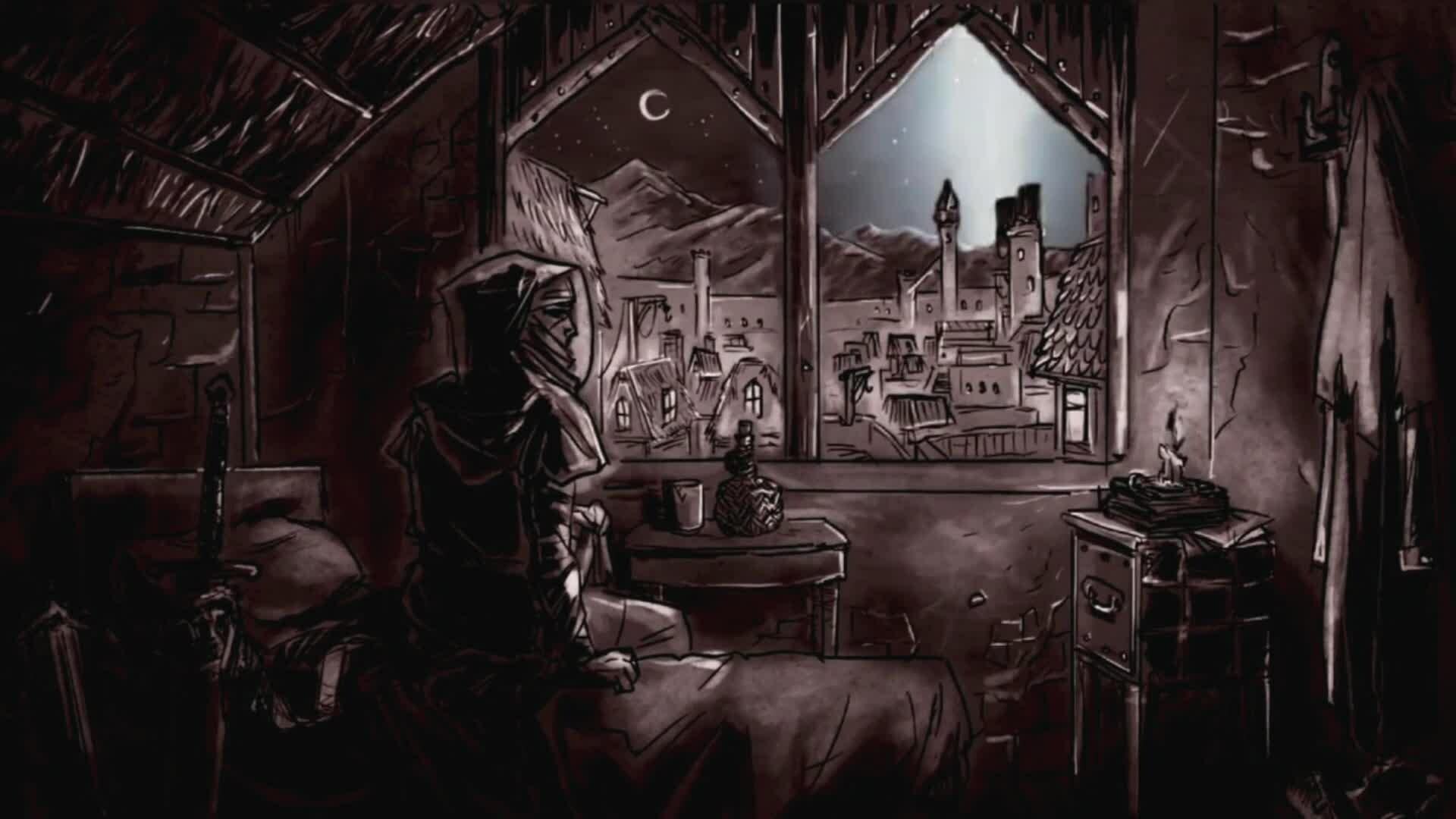 A classic turn-based RPG with dark aesthetics and a retro vibe, set in a mind-bending dark fantasy world with elements of Lovecraftian horror. A lot of emphasis is put on atmosphere and immersion, using hand-drawn artwork, somber musical score, and lots of written text. Reminiscent of tabletop DnD.
