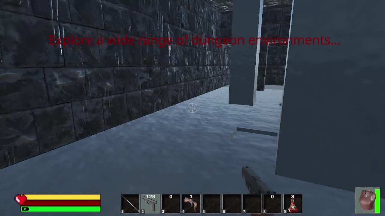 Battle your way through the levels, search for the gear you need to stay alive, and find the exit to the next level. Explore entirely new procedural levels every time, just to see how many you can get though.