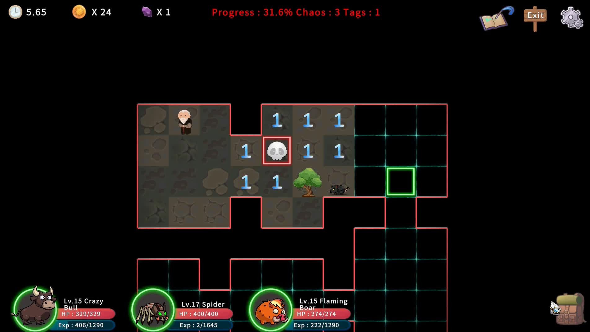 Mind Sweeper, it is a game that combines Minesweeper and RPG element. Use minesweeper way to explore the map. Collect monsters to strengthen your team and defeat the boss.